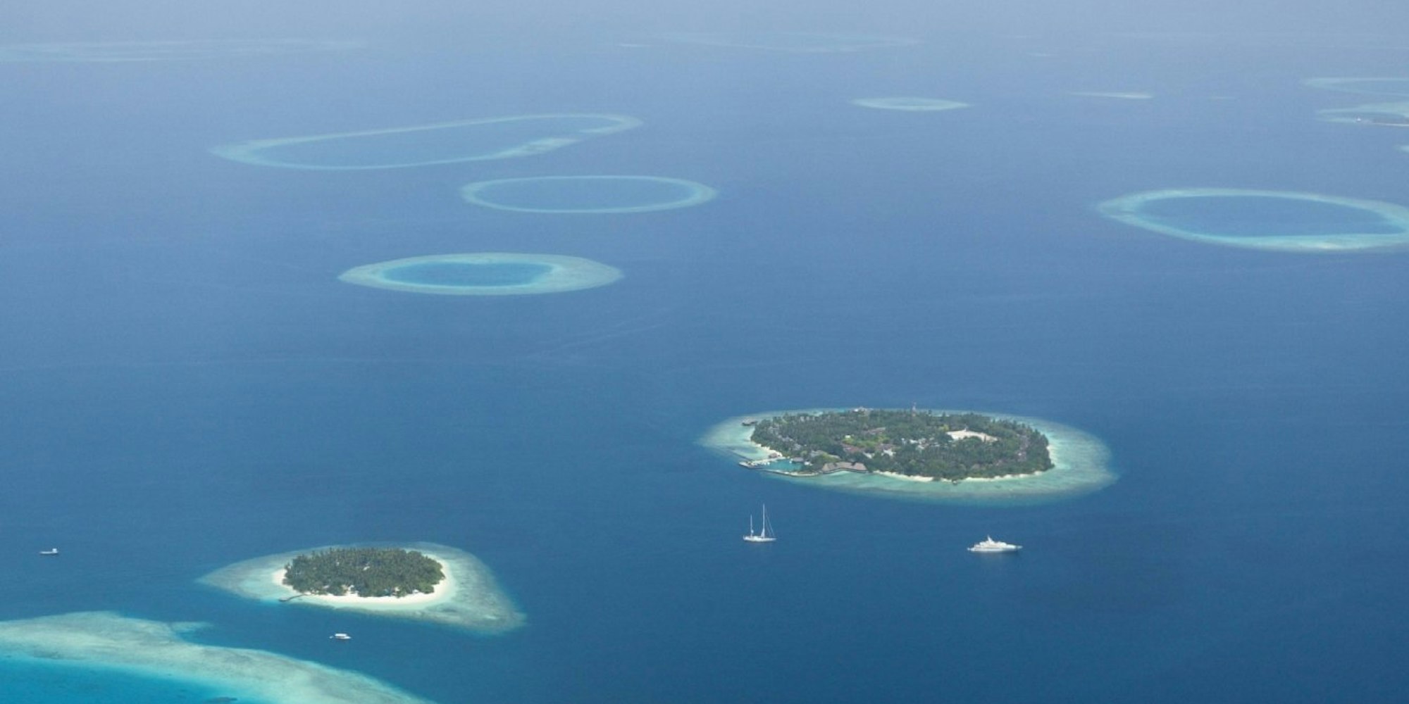 Den Malediven droht der Untergang. Hier: Luftaufnahme der Inseln Bandos und Kuda Bandos.