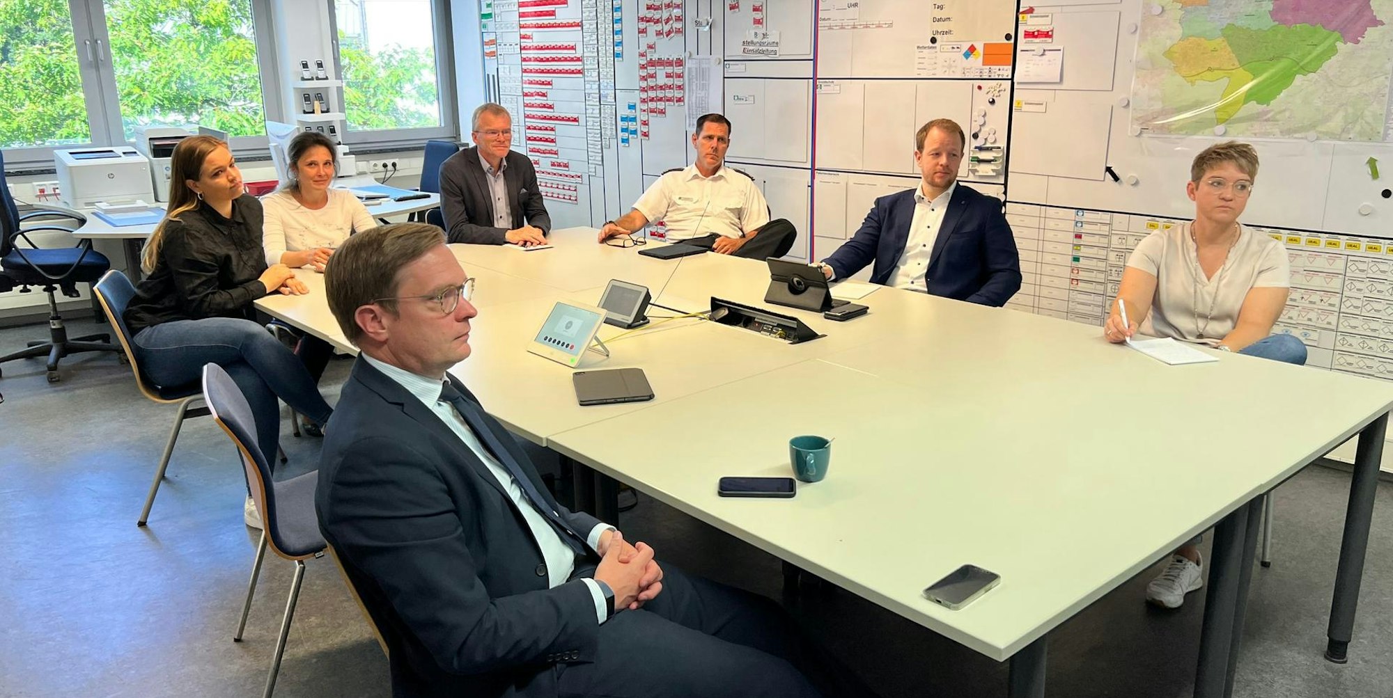 Dass andere besprochene Thema waren die Organisationsstrukturen bei Feuerwehr, Rettungsdienst und Ordnungsbehörden. Die seien entweder zerstört oder nicht vorhanden. Vereinbart wurde Video-Konferenzen der Fachabteilungen untereinander. Der Austausch mit den Ukrainern erfolgte über Dolmetscher.