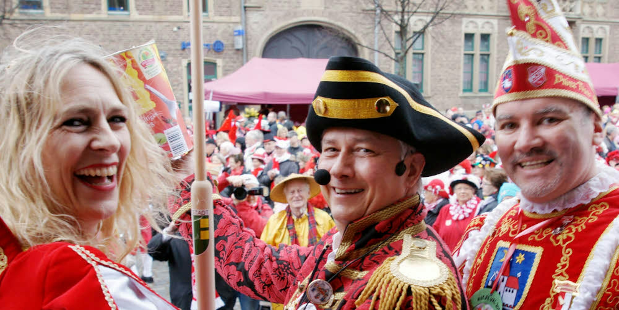 Das Bürgermeisteramt kann auch Spaß machen, wie hier bei der Rathauserstürmung 2017 auf dem Lechenicher Markt zu sehen ist.