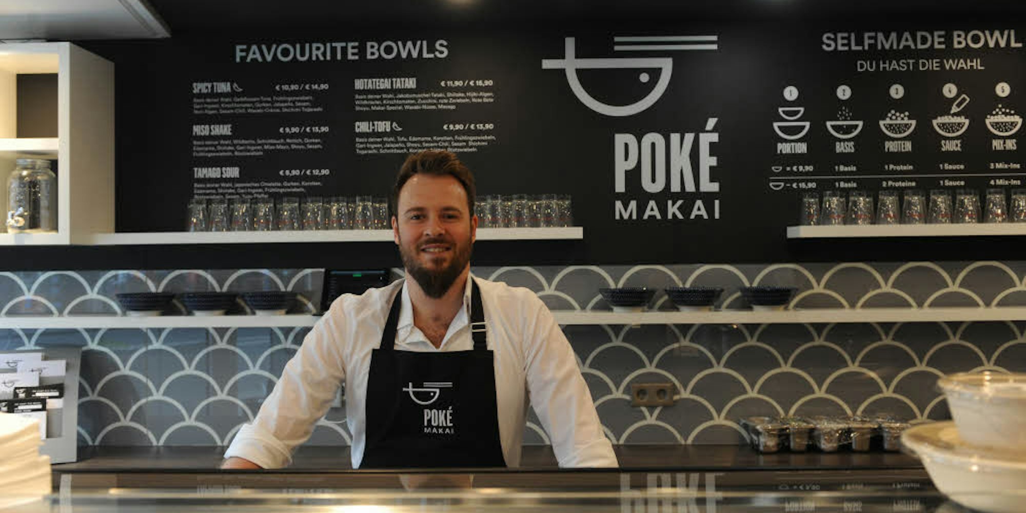 „Poké“, erklärt Gaul, heiße auf Hawaiianisch so viel wie in Stücke schneiden und „Makai“ bedeute Richtung Meer schauend. Ihn selber begeistere bei der hawaiianischen Küche, die einen starken japanischen Einfluss trage, die absolute Frische und die Möglichkeit, verschiedenen Zutaten nach Herzenslust mischen zu können. Die Bowls gibt es jeweils in zwei verschiedenen Größen, die günstigste kleine kostet 8,90 – die teuerste große 15,90 Euro.