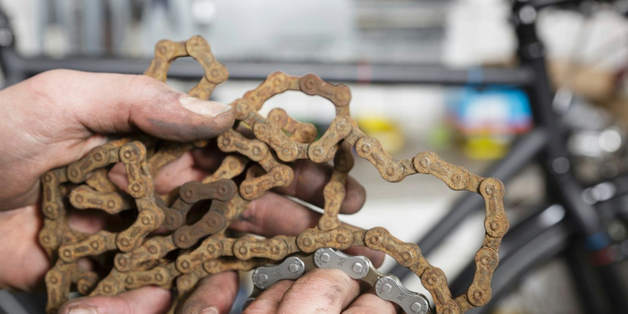 Wird die Kette nicht gepflegt, rostet sie und wird unbeweglich.