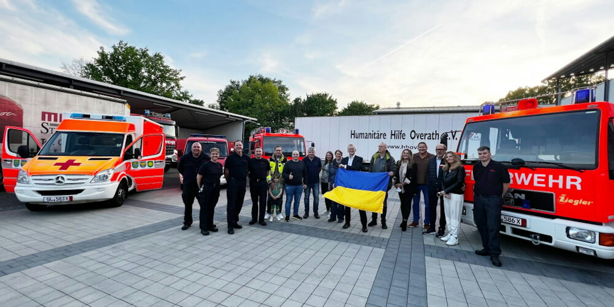 30 Tonnen Hilfsgüter in zwei Sattelaufliegern der Humanitären Hilfe Overath wurden mit dem Hilfskonvoi der Gladbacher Feuerwehr in die Ukraine gebracht.