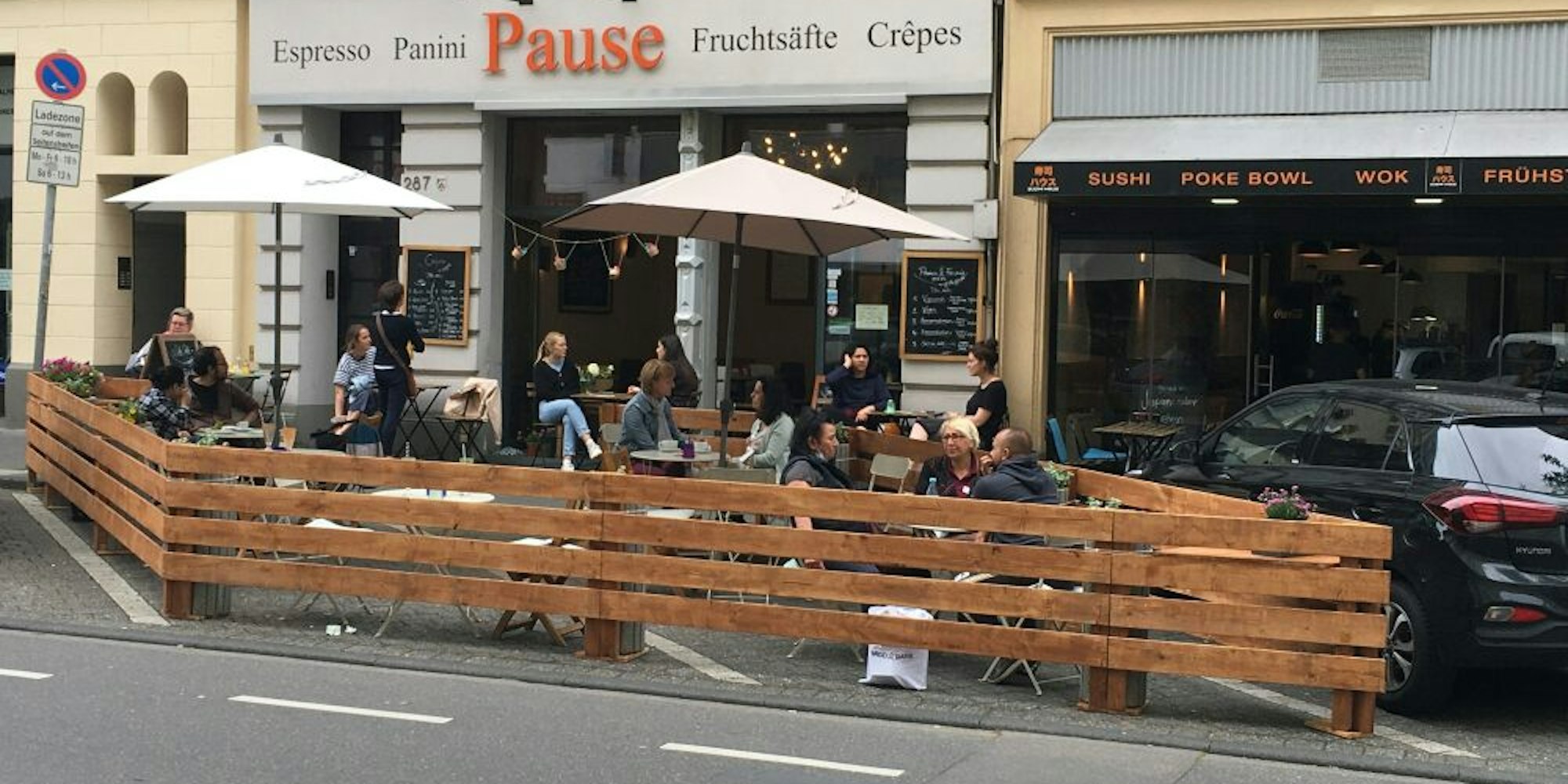 Köln – Seitdem die Gastronomie in Köln wieder geöffnet ist, reibt man sich mitunter verwundert die Augen und fragt sich: Wie kann das sein? – Da wurde an einem Lokal im Belgischen Viertel parallel zum Bürgersteig eine mehr als zehn Meter lange Bretterbude errichtet, aus der die Gäste nun durch Plastikfolien-Fenster zur Fahrbahn schauen. An der Neusser Straße hat man zwei Parkflächen mit einem gut hüfthohen Lattenzaun umsäumt, als läge dort eine Zweigstelle der Ponderosa-Ranch. An einem Lokal am Gottesweg sind Euro-Paletten horizontal und hochkant gestellt, mit Gewürztöpfen und Lichterketten drapiert und zusätzlich mit Pflanzenkübeln verbandelt, um dem Fußgänger anzuzeigen: Hier beginnt der Servier-Bereich.