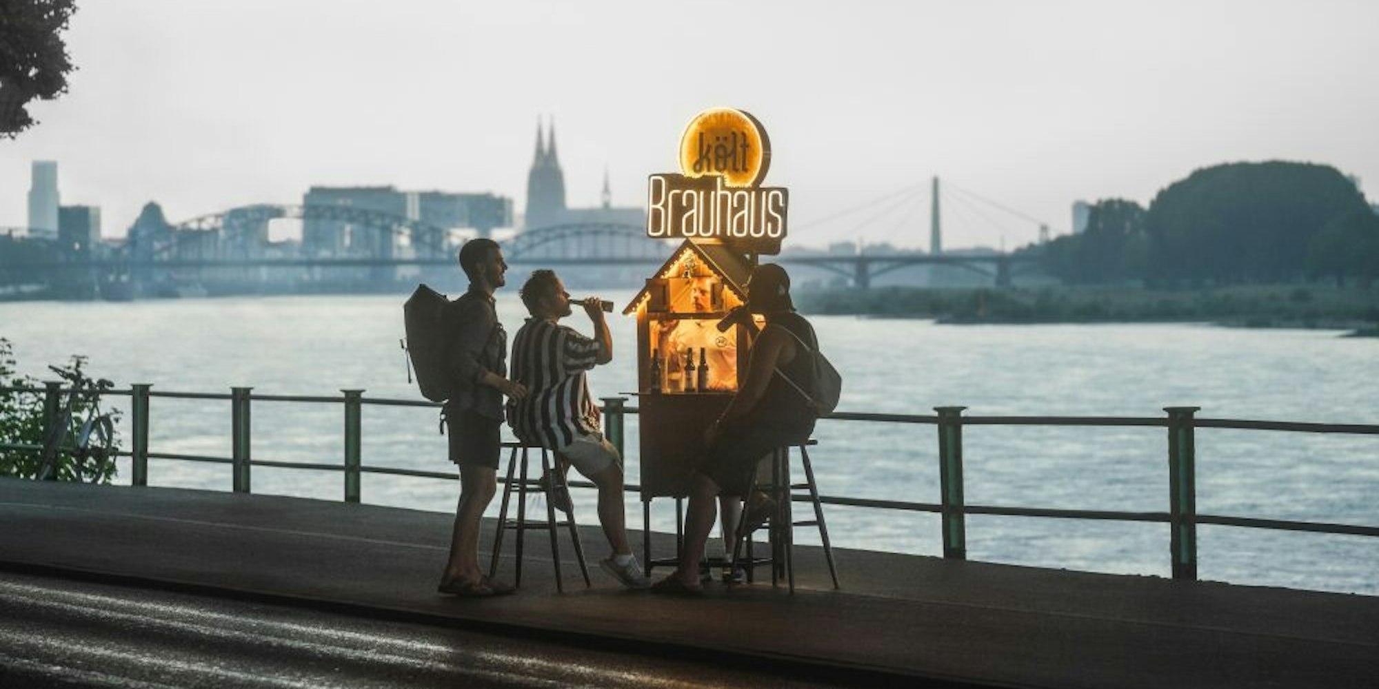 Köln – Stell dir vor, du hängst mit drei Freunden auf der Poller Wiese ab, der Tag neigt sich dem Ende und ein kleiner Durst macht sich bemerkbar. Plötzlich steht ein Brauhaus neben dir, ein eloquenter und freundlicher (!) Köbes bietet dir ein Bier an, man kommt ins Gespräch. Was wie ein feuchtes Träumchen aus dem siebten Bierhimmel klingt, könnte durchaus passieren. Eine gelungene PR-Idee des Monheimer Bierherstellers Költ macht es möglich.