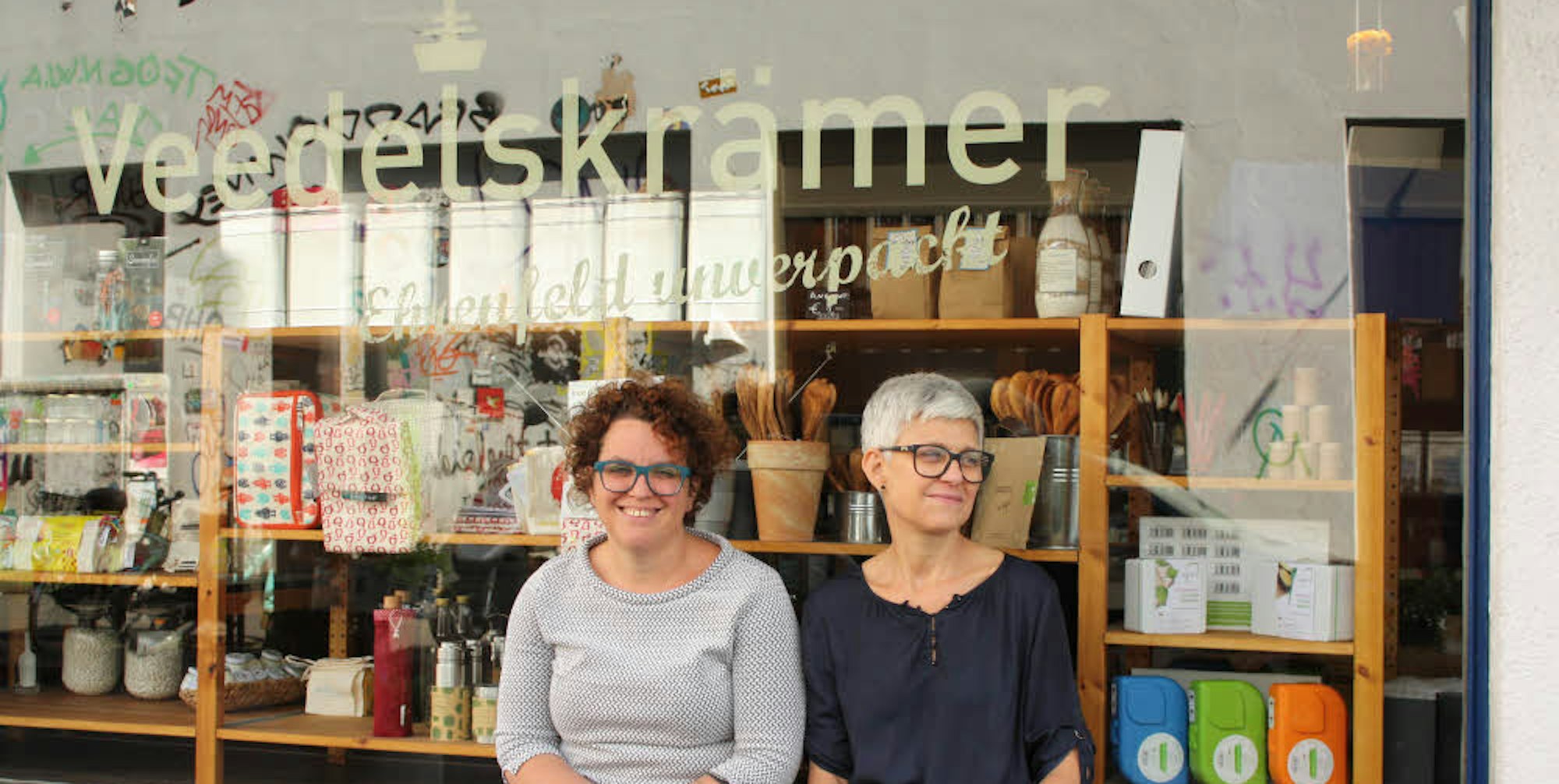 Olga Witt (l.) und Dinah Stark führen gemeinsam ihren Unverpackt-Laden „Tante Olga“ in Sülz an der Berrenrather Straße.