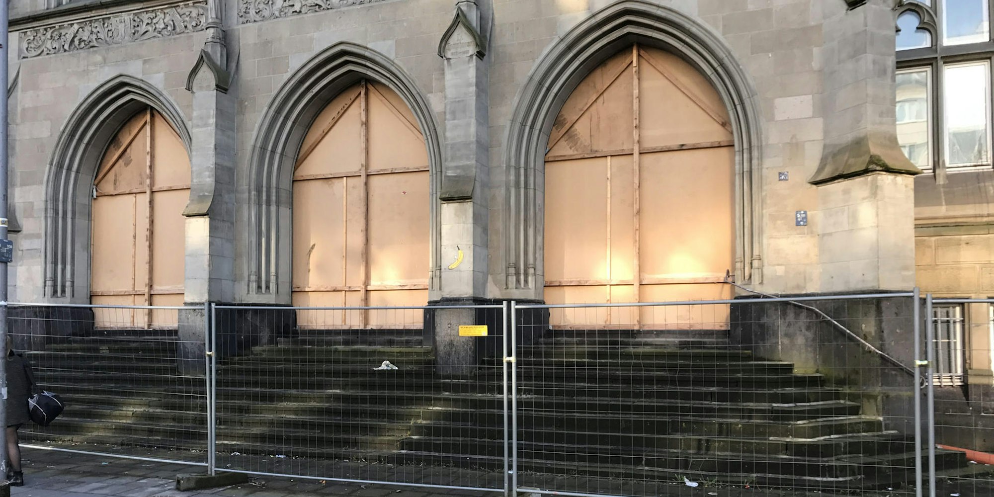 Wegen Sanierung weiterhin geschlossen: Wie hier beim Hansaygymnasium verfolgt die Stadt ehrgeizige Ziele. Doch bei der praktischen Umsetzung zeigt sich fast immer, dass es länger dauert und teurer wird, als geplant.