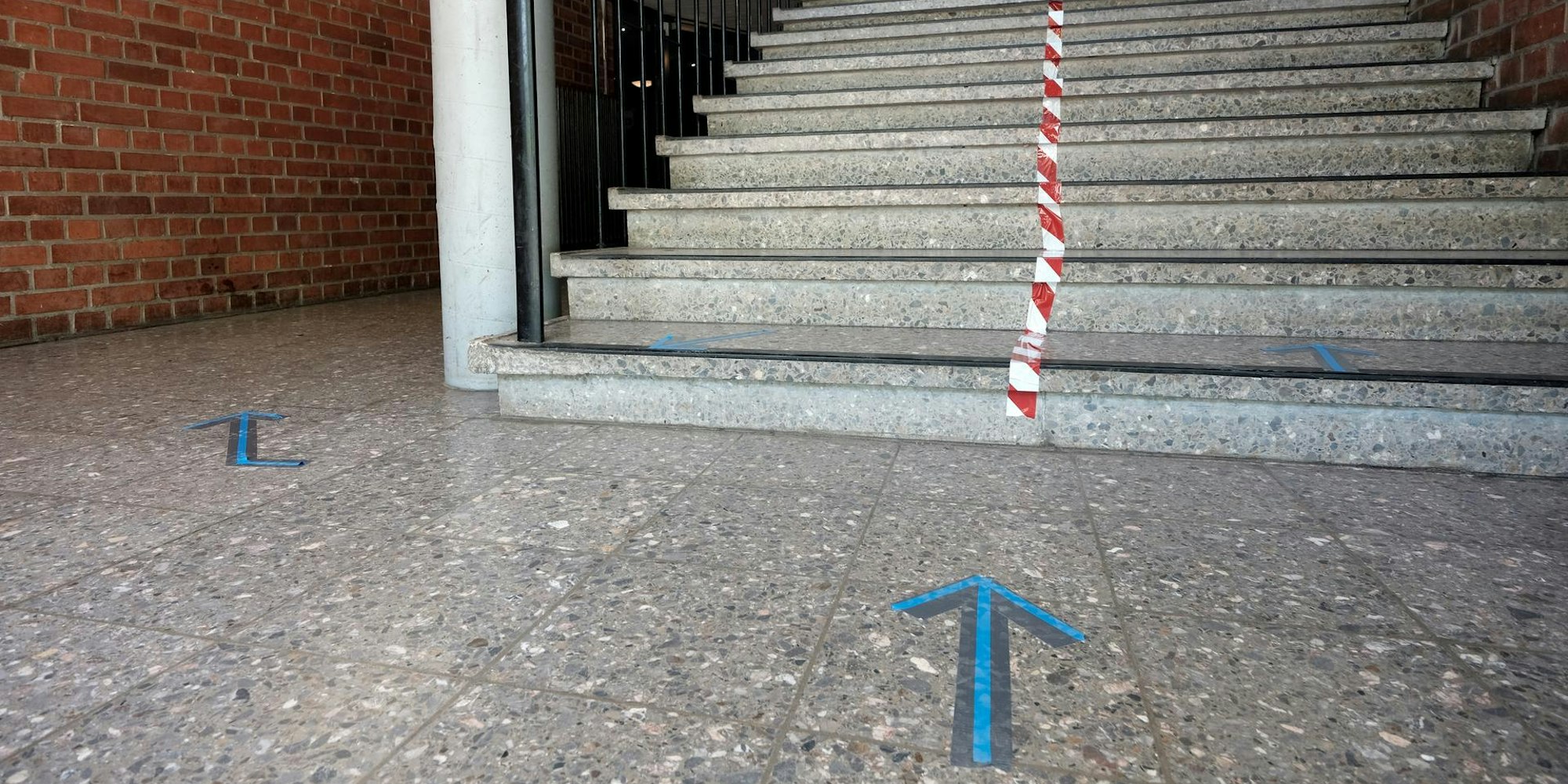 Abstandsmarkierungen im Gymnasium Kreuzgasse