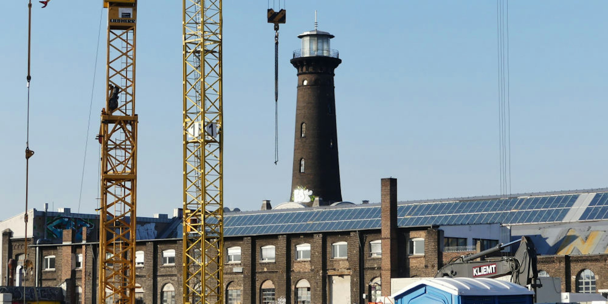 Ehrenfeld – Beinahe winzig und ein wenig verloren steht er da, der Heliosturm. Ehrenfelds Wahrzeichen wird derzeit von den mächtigen Kränen überragt, die auf der Baustelle der Heliosschule stehen. Es wird gebaut unter dem Turm. So paradox es aber klingt: Einen gültigen Bebauungsplan für das Gelände gibt es noch immer nicht. Der im November begonnene Bau der Schule wurde aus dem noch nicht abgeschlossenen Bebauungsplanverfahren ausgeklammert, indem man sagte, dass die Gebäude sich mit ihrer Größe und der Art ihrer Nutzung schon in die Umgebung einfügten.