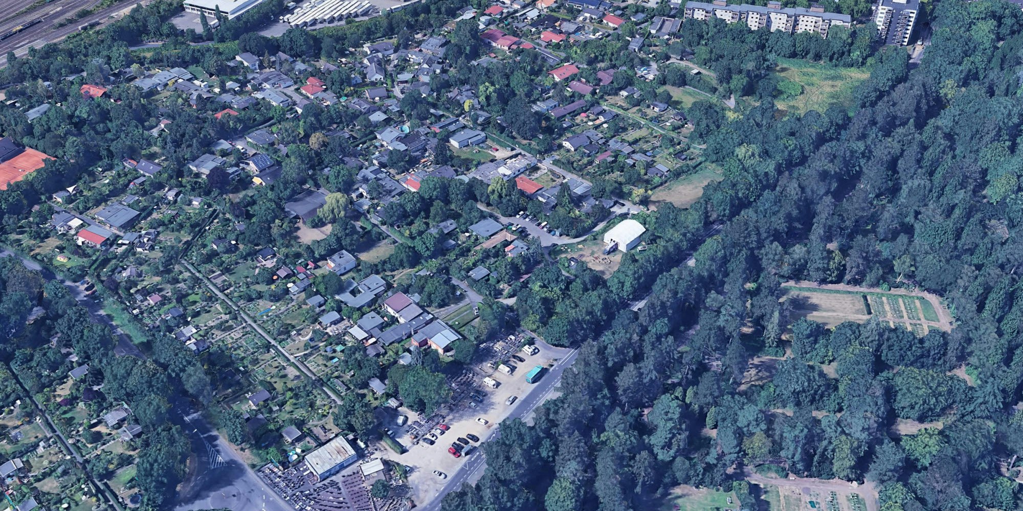 Rund zwei Hektar groß ist das noch verwilderte Areal, das an die bestehende Siedlung und den Südfriedhof grenzt. Die ungeordnet wirkende Siedlung ist für ihren Charme berühmt. Sie ist informell entstanden und war lange nicht an städtische Wege- und Versorgungsnetze angeschlossen.