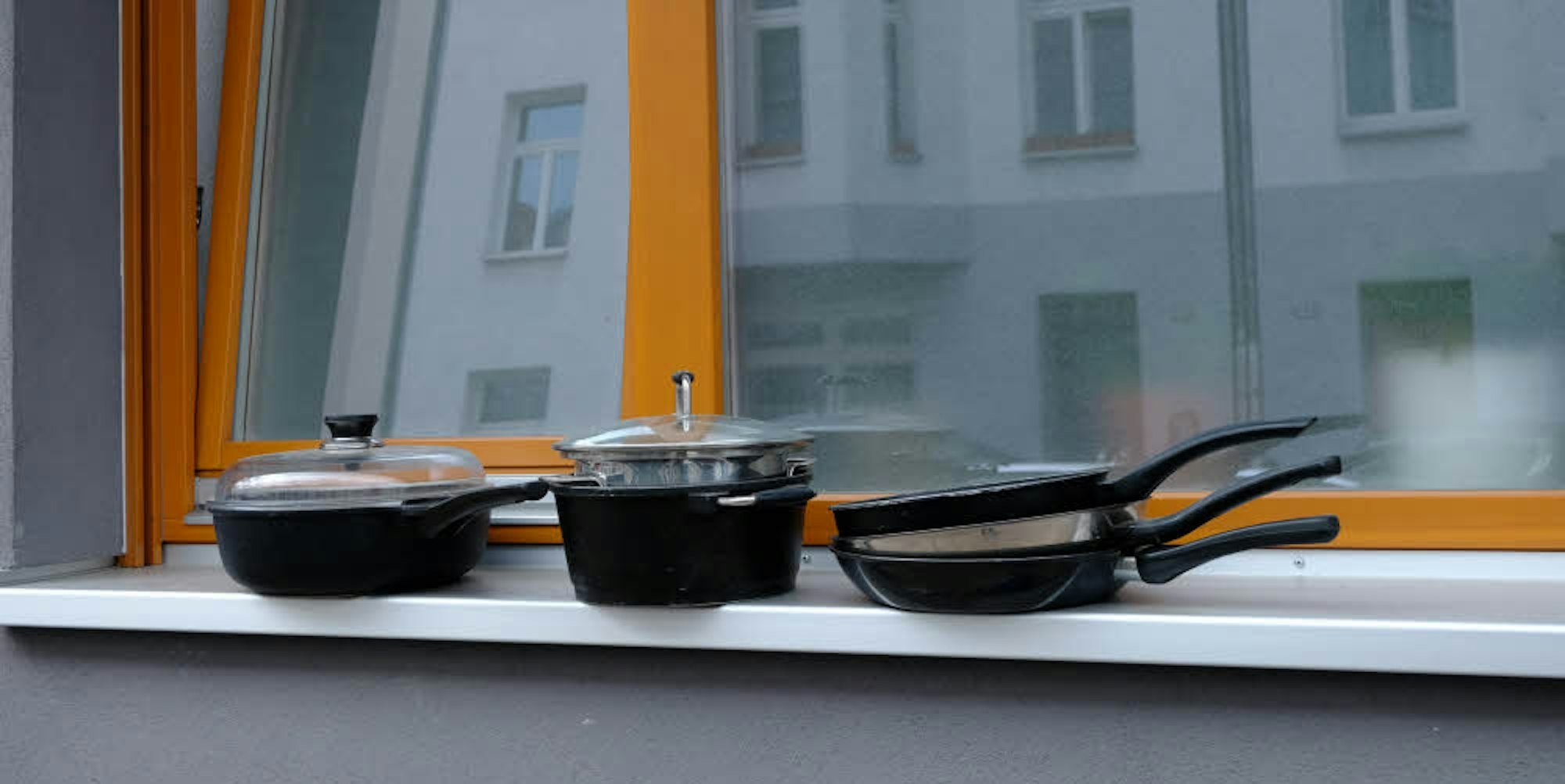 Einige Meter weiter stehen Töpfe und Pfannen auf einer Fensterbank, als ob darin etwas langsam in der Sonne schmort. In Klettenberg ist ein Pappkarton mit einer ganzen Batterie abgelatschter Flipflops gefüllt, für Menschen, die zufällig die gleiche Schuhgröße haben und die Latschen noch ein wenig breiter treten möchten.