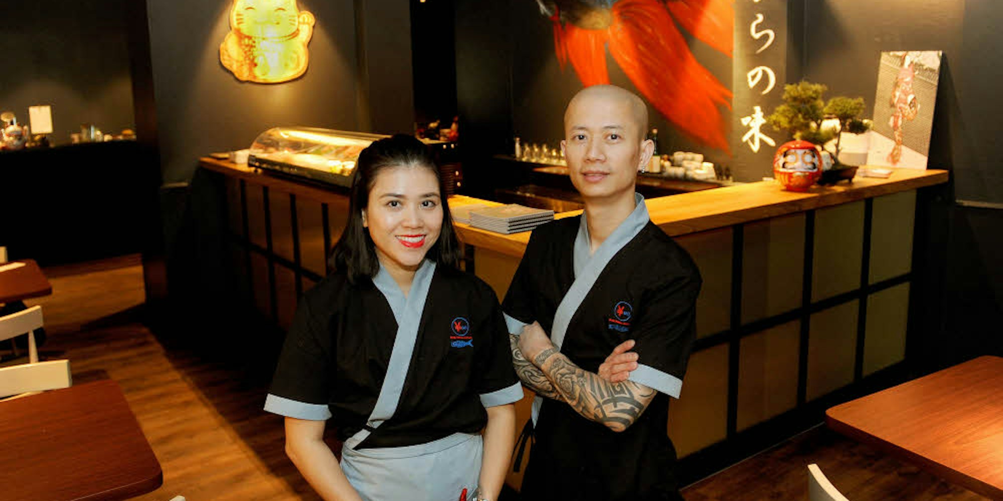 Das Gastronomen-Ehepaar Tri Hong Ngan Tran (l.) und Duy Hung Nguyen (38) in ihrem Restaurant „Yen Sushi“