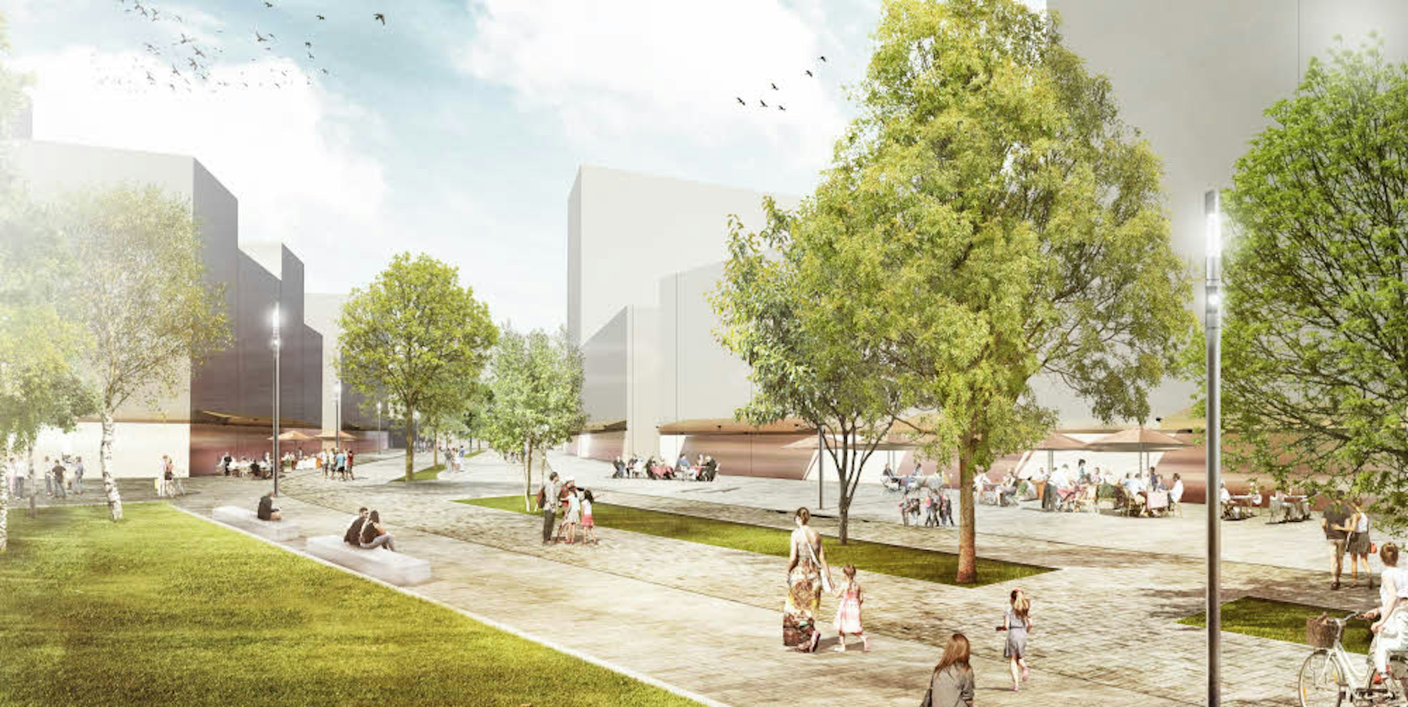Der grüne, autofreie Boulevard im Quartier Parkstadt, wie ihn sich die Architekten vorstellen