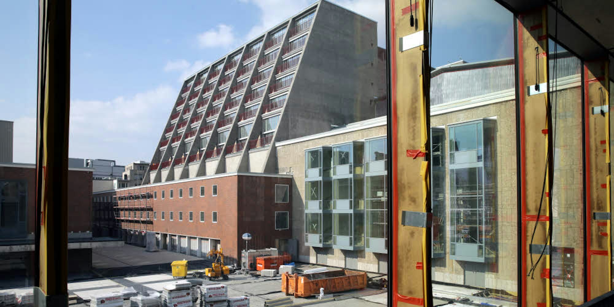 Blick auf Schauspielhaus und Oper von der Empore des Neuen Hauses.