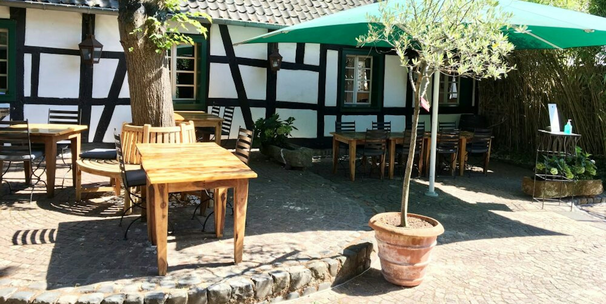 Eine besondere Attraktion ist jedoch der weitläufige Innenhof, durch den immer ein leichter Wind zieht, so dass man dort selbst bei brütender Hitze angenehm sitzen kann. „Man schließt hier morgens auf und denkt: „Ach, wie schön ist das hier!“, sagt Helga Zeumer-Peer, die insbesondere für das Restaurant im Falderhof mit dem Namen „Altes Fachwerkhaus“ zuständig ist.