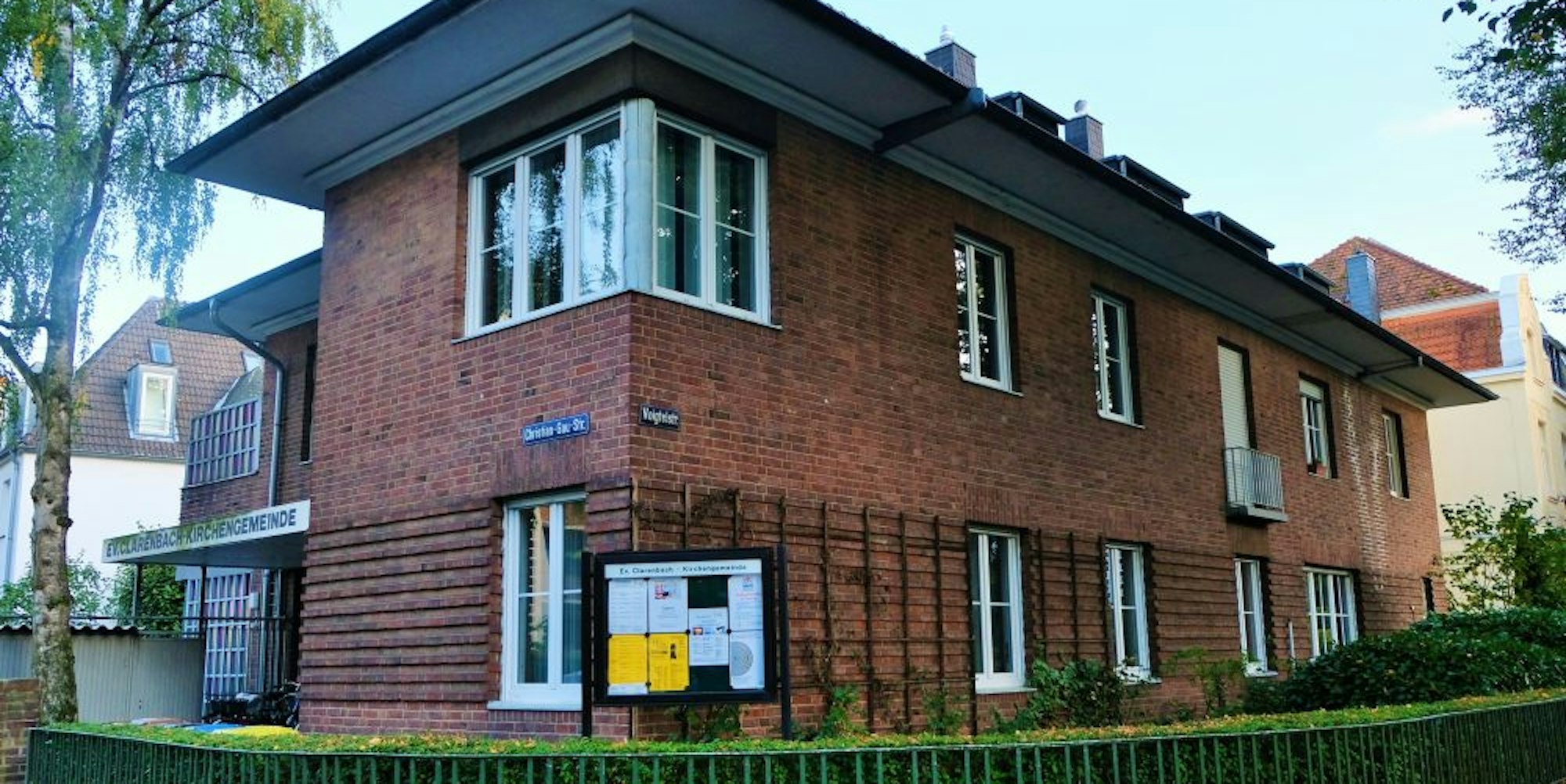 Das Gemeindehaus zeugt nicht nur von Baukultur. Es ist auch in anderer Hinsicht historisch bedeutend. Es war lange das Heim der evangelischen Clarenbachgemeinde und ein wichtiger Treffpunkt für junge und alte Gemeindemitglieder. Viele Viertelsbewohner verbrachten dort als Konfirmanden viele Stunden. Die Friedensinitiative Braunsfeld-Müngersdorf traf sich dort.