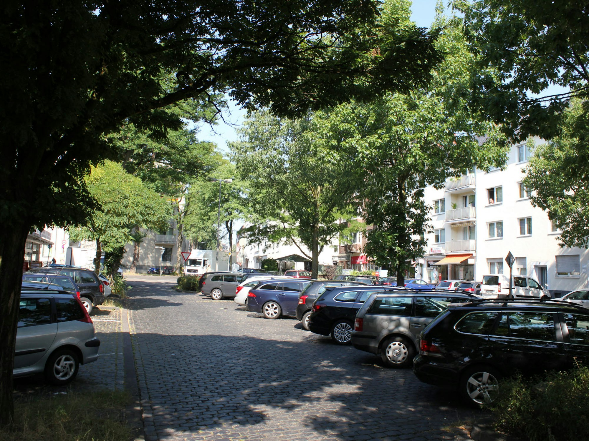 Die Fläche des Platzes umfasst den gesamten Bereich zwischen der Einmündung im Westen und der Kreuzung von Herler Straße und Johanniterstraße im Osten. „Hier gibt es viele Stellplätze für Autos, aber keine Freiräume und keine Möglichkeit für die Anwohner, sich gemütlich hinzusetzen“, beschrieb Sarah Wendland vom Stadtplanungsamt die Situation. Das Areal, das sich zwischen der Gaststätte Alt Buchheim und Herler Ecke erstreckt, biete kaum etwas für Fußgänger. Wendland: „Weil es in Buchheim wenige schöne Orte mit Grün und Raum zum Verweilen gibt, wollen wir hier einen Quartiersplatz schaffen.“ Möglich werde das, weil im Stadterneuerungsprogramm „Starke Veedel – Starkes Köln“ Mittel dafür zur Verfügung stehen. Elke Müßigmann, stellvertretende Leiterin des Stadtplanungsamts, stellte die Mitarbeiter des Büros für Landschaftsarchitektur und Stadtentwicklung „Kraft.Raum.“ aus Krefeld, René Rheims und Dihang Lin sowie den Verkehrsplaner Philipp Ambrosius aus Bochum vor, die drei mögliche Umbauvarianten für den Platz entwickelt hatten. Gemeinsamkeit ist eine strikte Trennung von Fußgängerbereich und Autoverkehr. Müßigmann: „Was wir heute vorstellen, ist ein erster Schritt, und wir entwickeln Ideen , was gemacht werden könnte.“