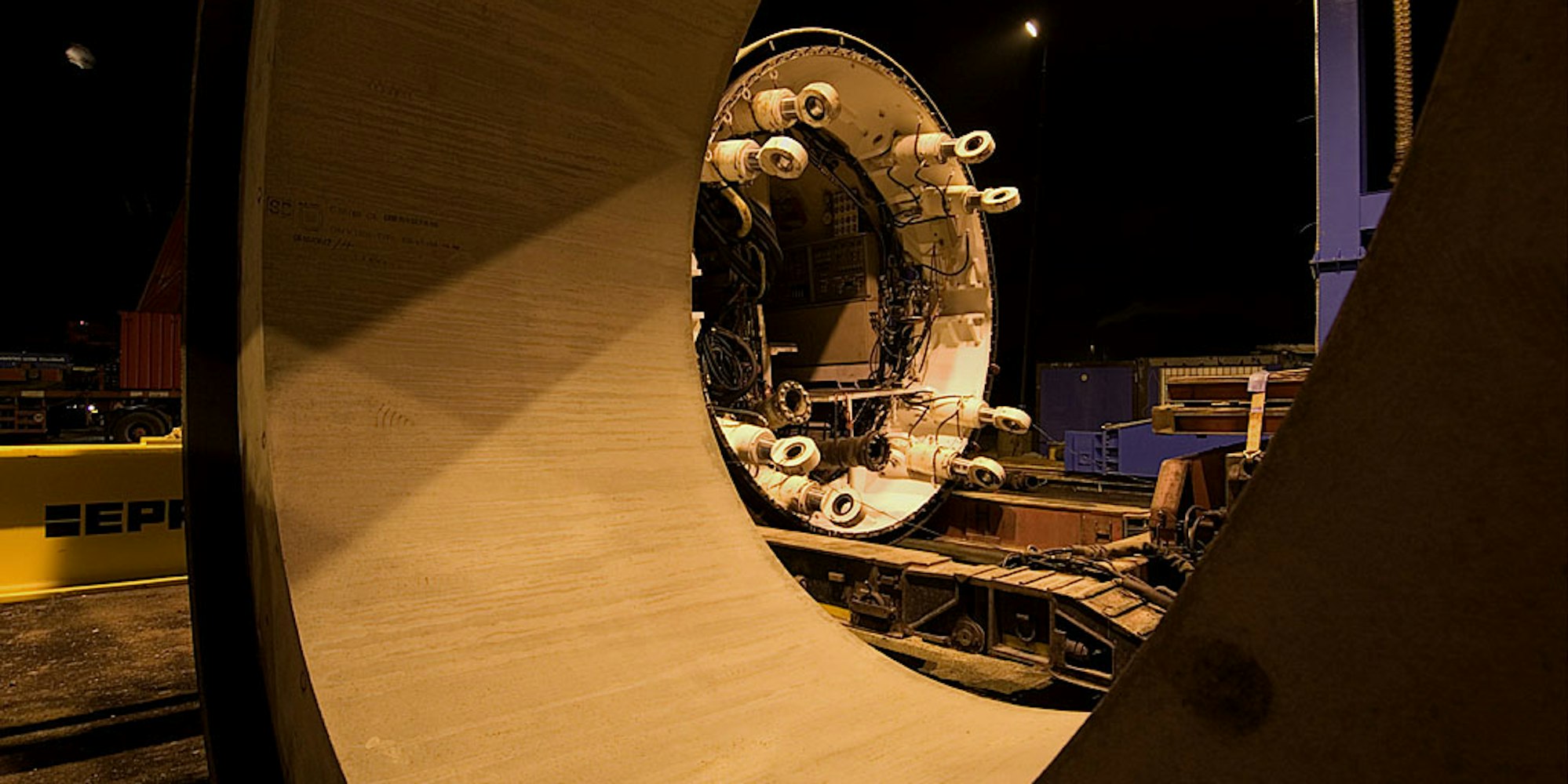 Der Ausschnitt eines Düker-Rohrs, wie es unter dem Rhein neu verbaut wird.