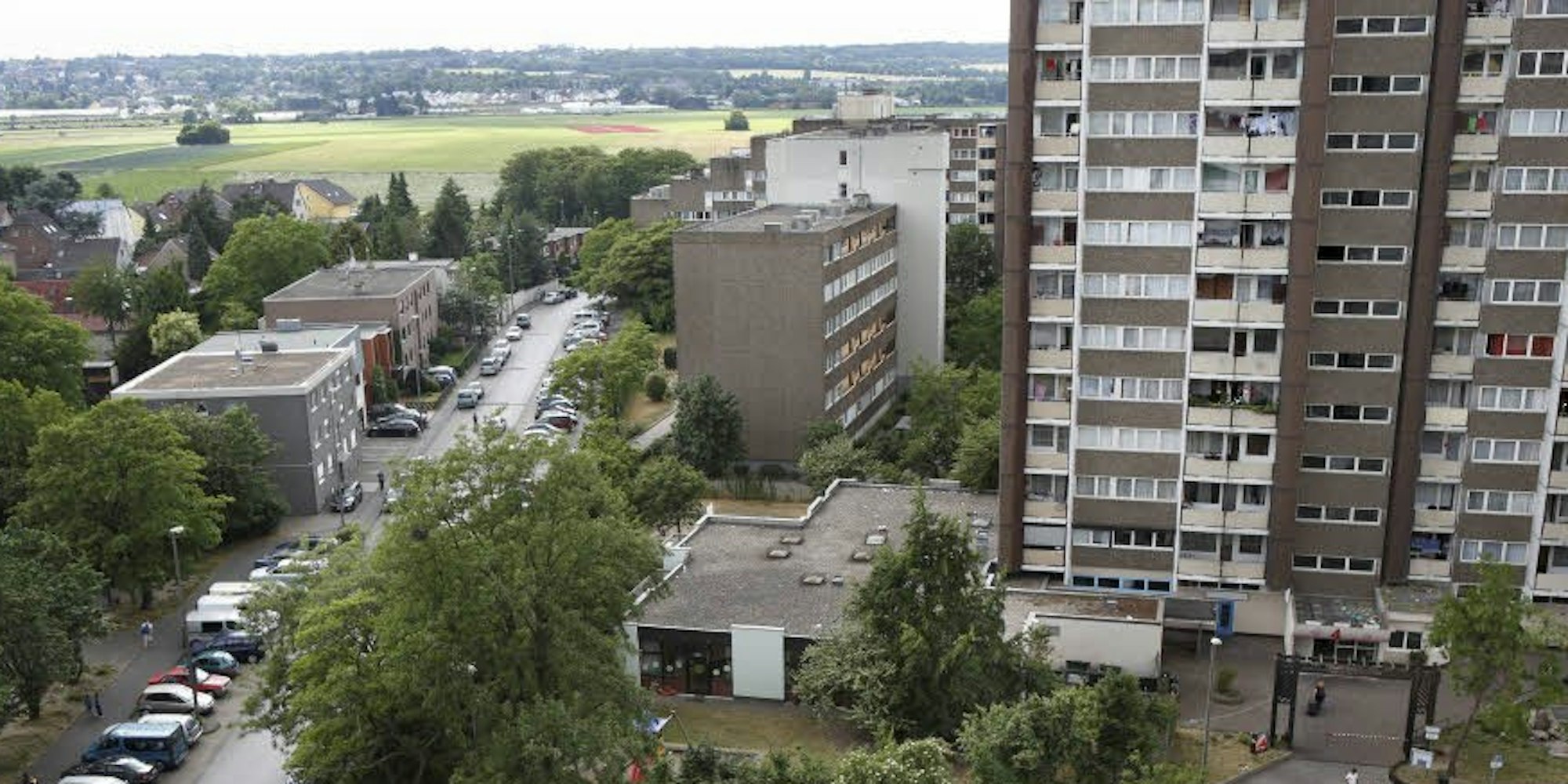 Meschenich – Die wenigsten Häuser in Meschenich haben mehr als drei Geschosse. Ein Dorf wie viele im Kölner Süden – wenn die allgegenwärtige Kulisse der Hochhaussiedlung nicht wäre.