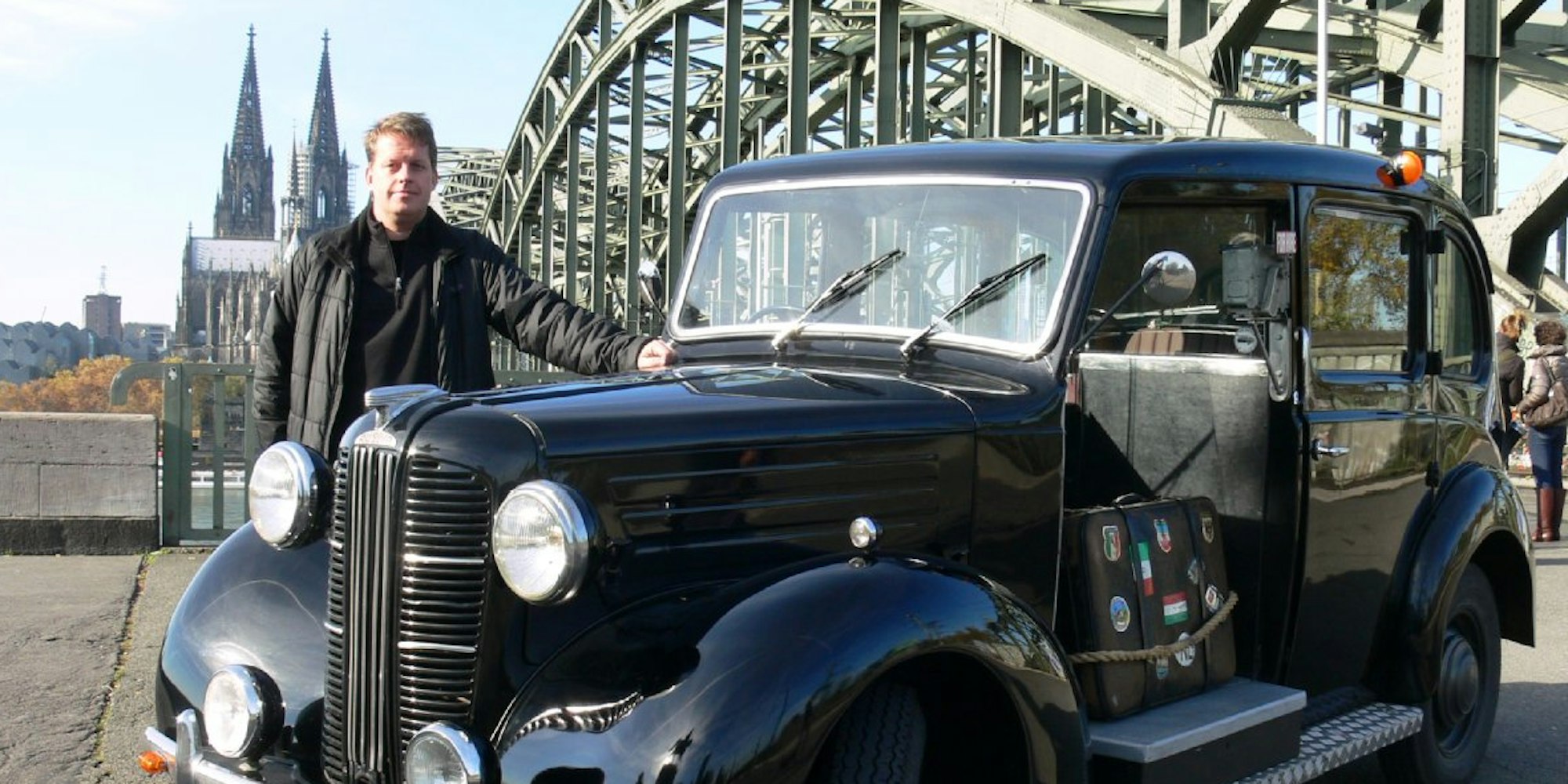 Köln – Früher waren die Straßen Londons das Revier des „Black Cab“ von Karsten Quaschnig. Mindestens bis in die frühen 1970er Jahre hinein leistete der voluminöse Wagen Schwerstarbeit als Taxi. Man kann es sich gut vorstellen, wie der Fahrer – eingerahmt von Glasscheiben, das Gepäck im offenen Abteil links neben ihm – rauchende Edeldamen und feine Geschäftsleute mit Hut durch vernebelte Gassen chauffierte. Das ist lange vorbei, das London-Taxi befindet sich nun im Kölner Ruhestand. Hier schart der stattliche Austin regelmäßig Fans um sich: Als Quaschnig (www.austin-oldtimer-koeln.de) an diesem Tag an der Hohenzollernbrücke Halt macht, wollen die Kölntouristen nur eins: Ein Foto von diesem „nice car“.