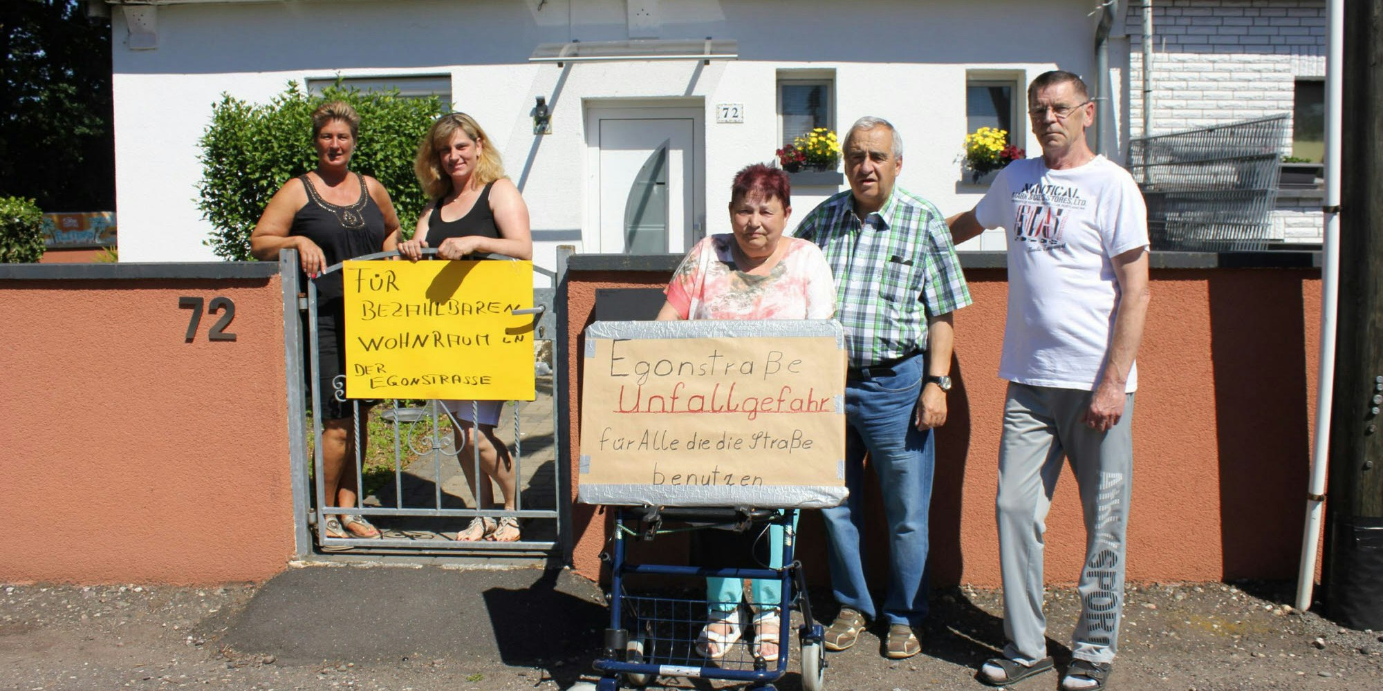 Die Bewohner der Häuser an der Egonstraße fordern, ihre Häuser zu erhalten.