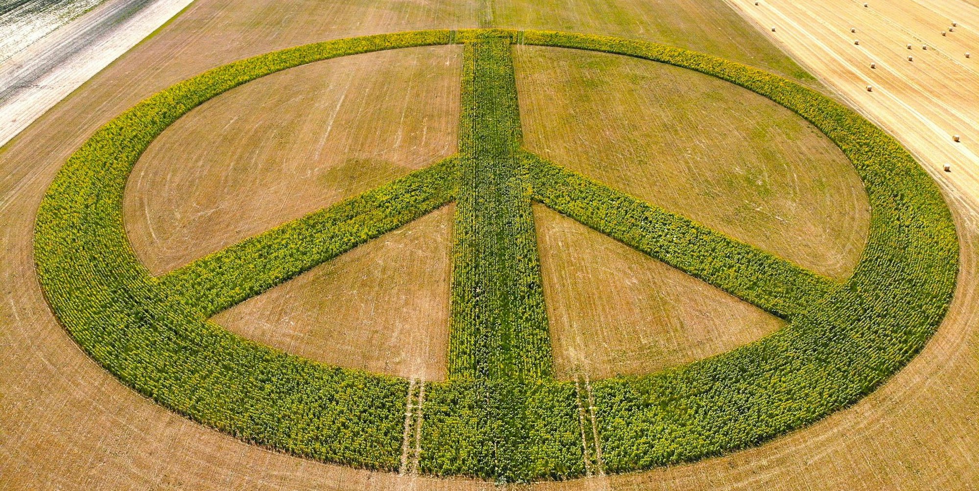 Pulheim-Stommelerbusch – Das Peace-Zeichen auf einem Feld in Stommelerbusch ist ein Hingucker. Auch Flugreisenden fällt das großformatige Friedenssymbol mit einem Durchmesser von 246 Metern aus luftiger Höhe auf. „Wir bekommen ständig Fotos von Leuten aus Urlaubsfliegern“, auch der Sänger Max Giesinger habe ihm schon ein Foto geschickt, erzählt Markus Wipperfürth.