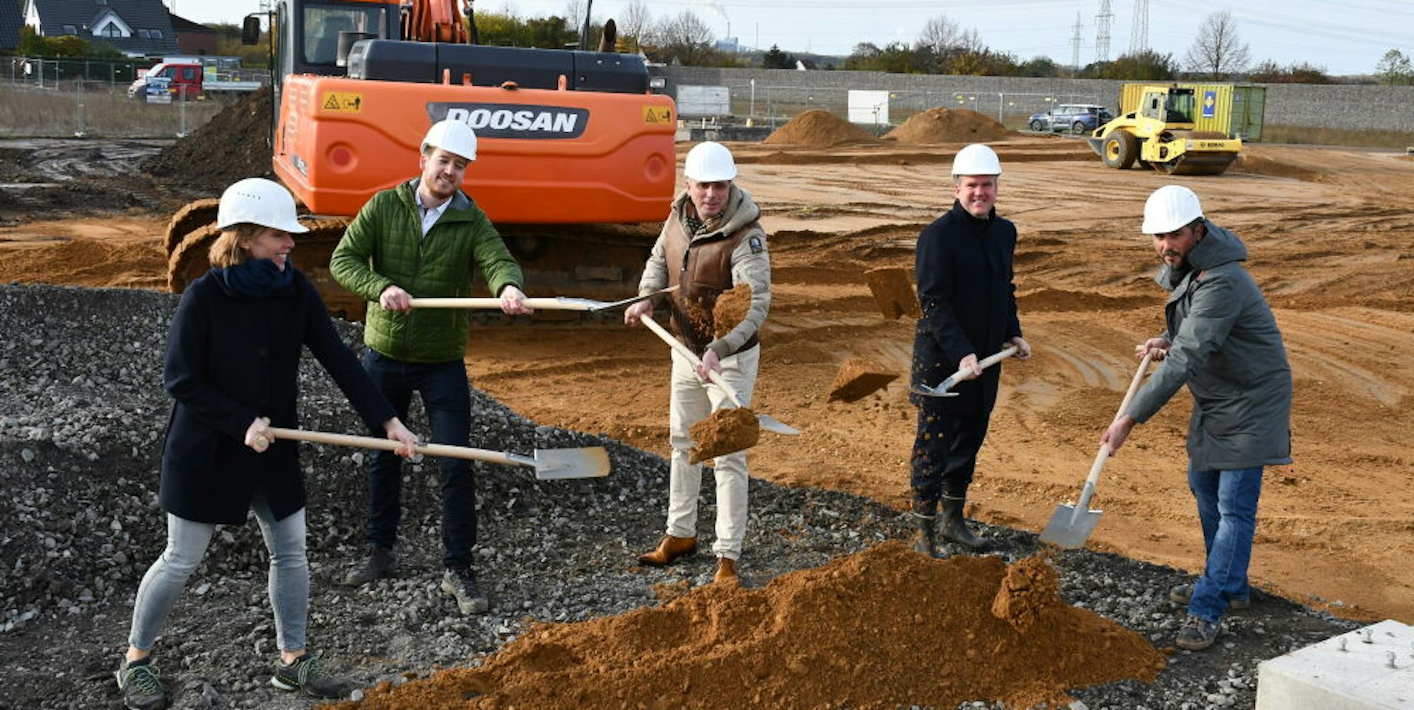 Zum Spaten griffen Simone Faßbender, Sebastian Adams, Achim Leirich, Bürgermeister Breuer und Stawros Chatzoudis.