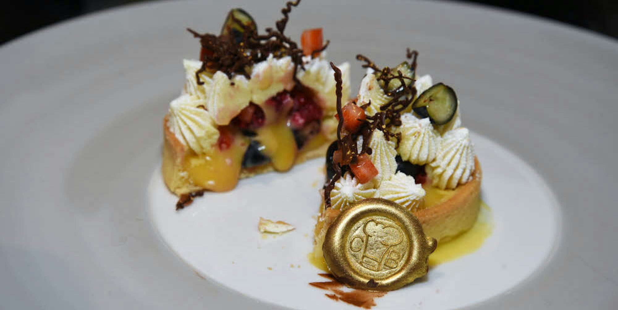 In der Mühlenhelle richtet Becker bis zu 60 Desserts an. „Die meisten sind kleine Kunstwerke, die man am Ende eigentlich gar nicht essen möchte“, sagt er und muss schmunzeln.
