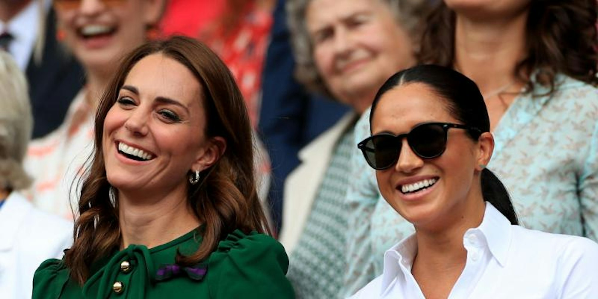 Gut gelaunte Herzoginnen beim Tennis: Kate (l) und Meghan in Wimbledon. (Archivfoto)