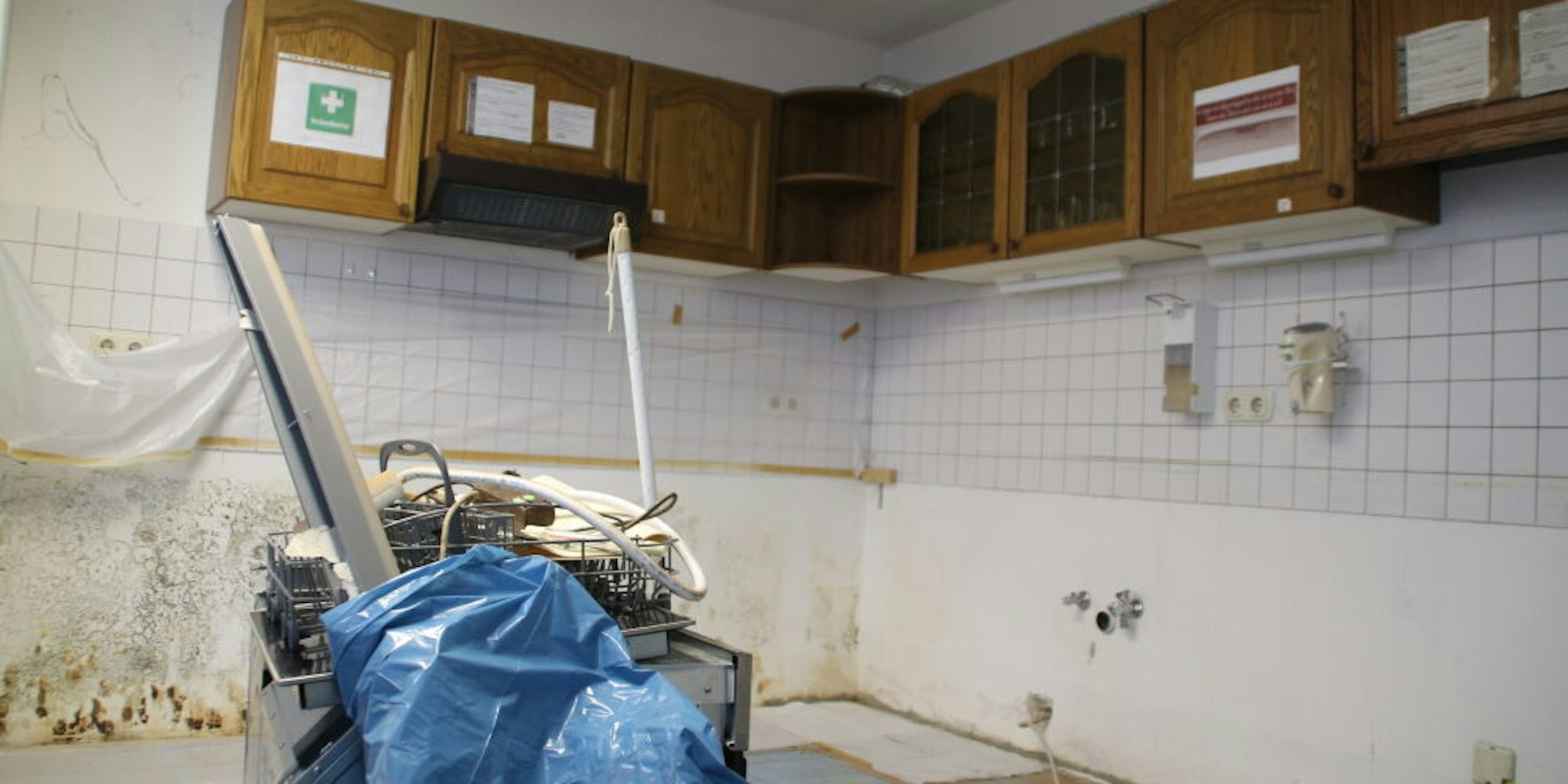 In der Küche des Vereins bildet sich bereits Schimmel. Die Unterschränke mussten alle entsorgt werden.