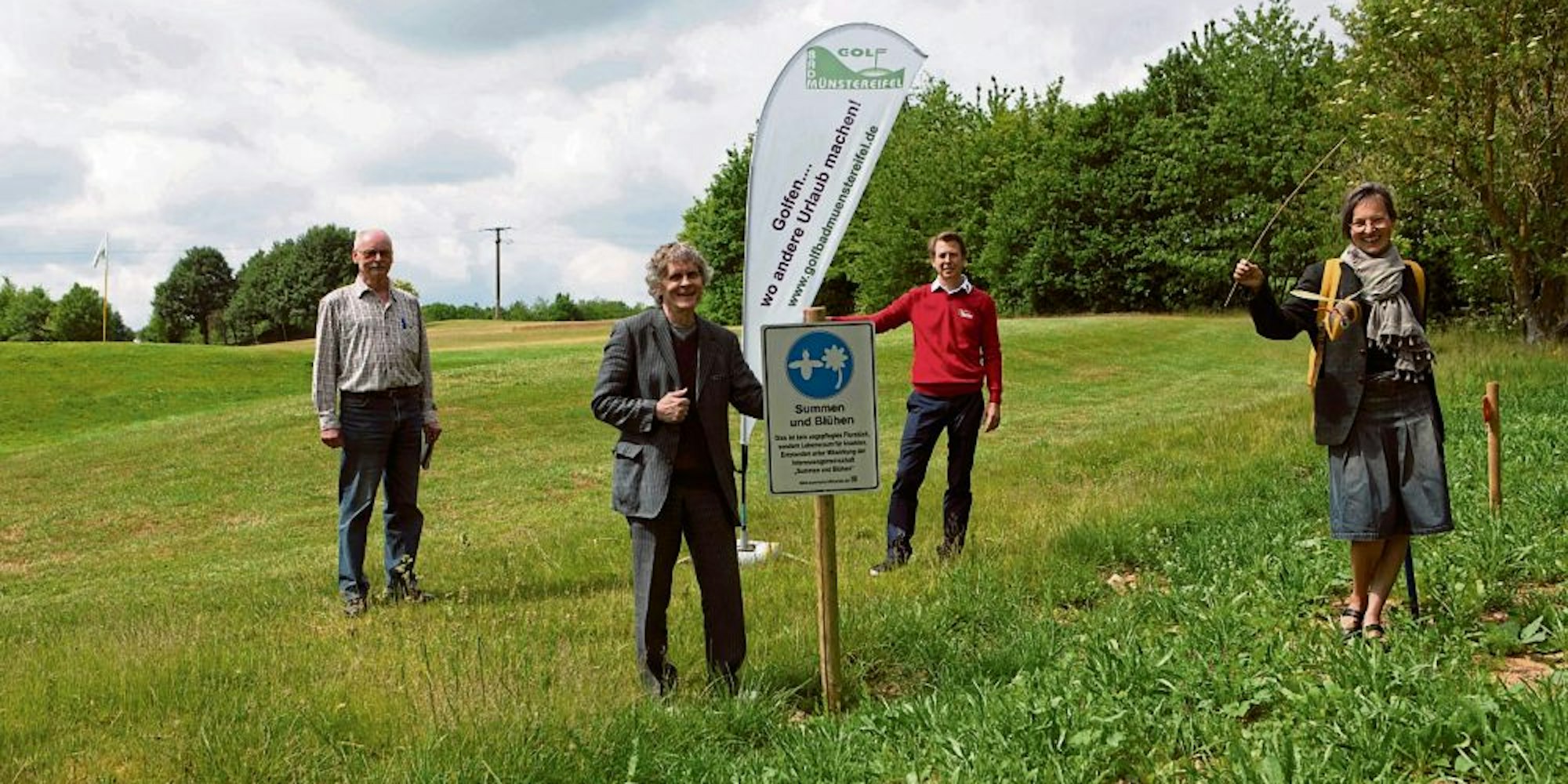 Bad Münstereifel-Eschweiler – Auf offene Ohren stieß die Idee der Initiative „Summen und Blühen“, am Golfplatz in Eschweiler Blühstreifen mit Wildblumen anzulegen, bei Tilman Wrede, dem Geschäftsführer des Golfclubs. „Das vermehrte Insektensterben und der besorgniserregende Zustand unserer Natur waren der Grund dafür, dass wir im April des vergangenen Jahres die Initiative gegründet haben“, sagt Christiane Remmert.