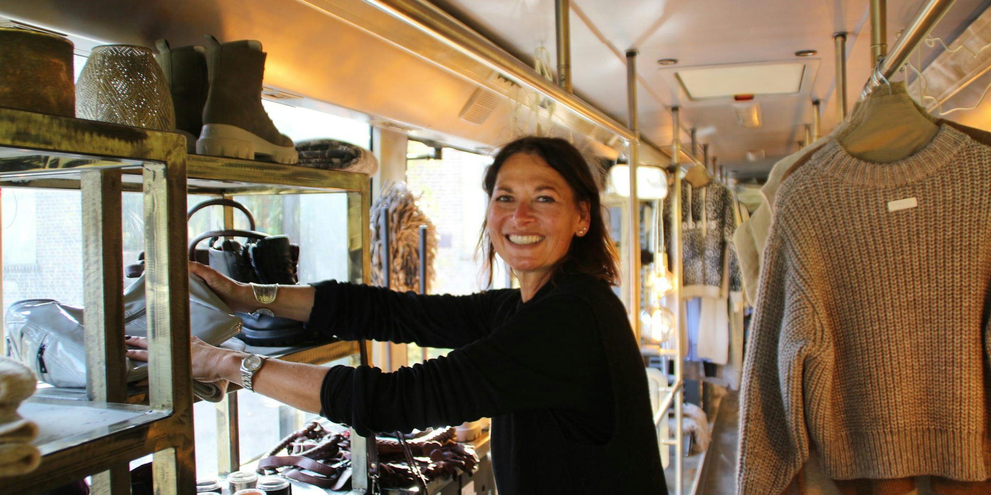 Regale statt Sitzplätze: Miriam Nölkensmeier hat ihren Concept Store „Bottega“ in einen ehemaligen Schulbus verlagert.