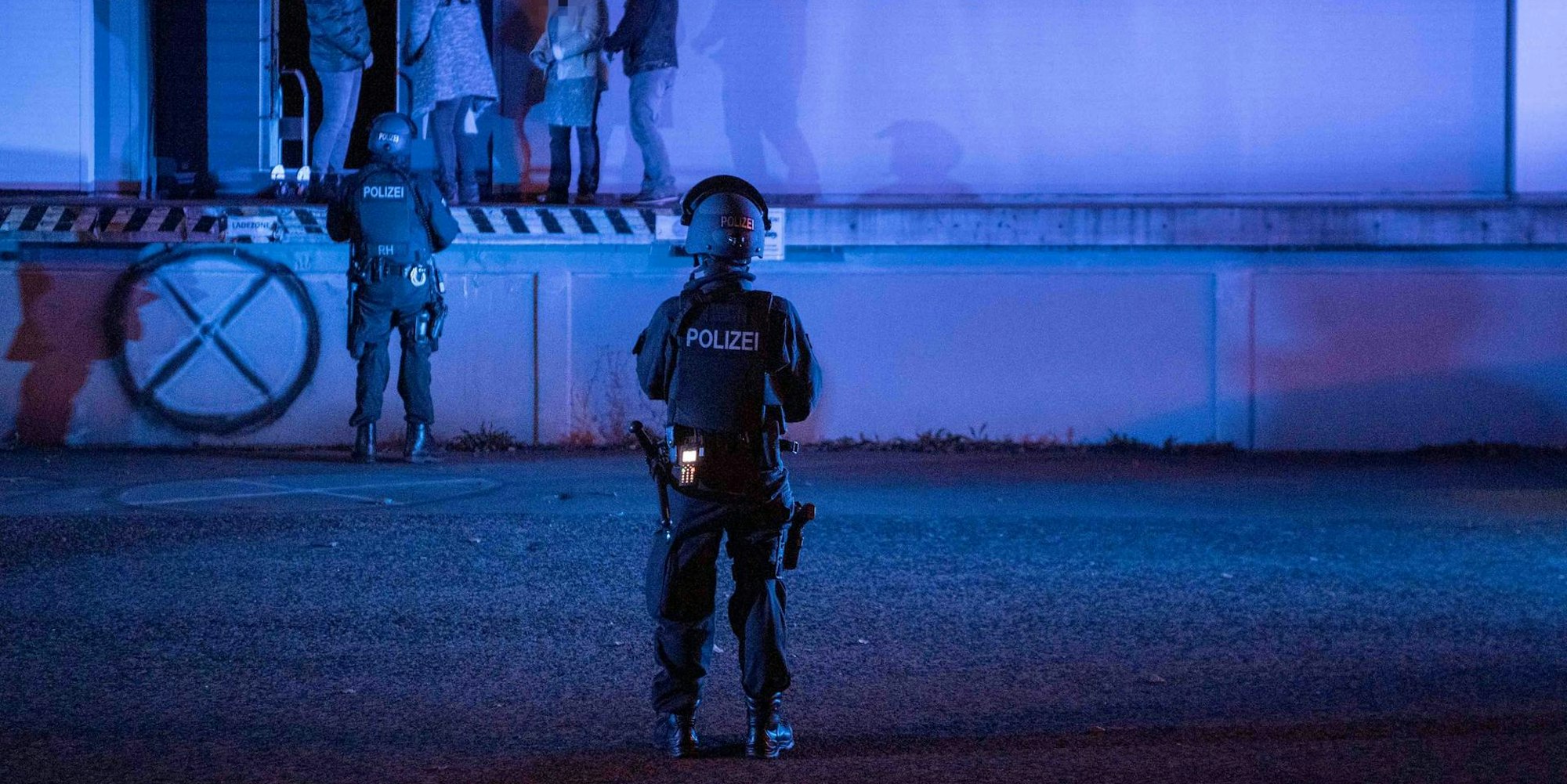 Die Bewohner konnten nach wenigen Minuten und einem klärenden Gespräch mit dem Einsatzleiter wieder in ihre Wohnungen zurück. Währenddessen leuchtete ein Beamter mit seiner Taschenlampe in die vor der Laderampe abgestellten Autos. Ein Lieferwagen interessierte ihn dabei besonders.