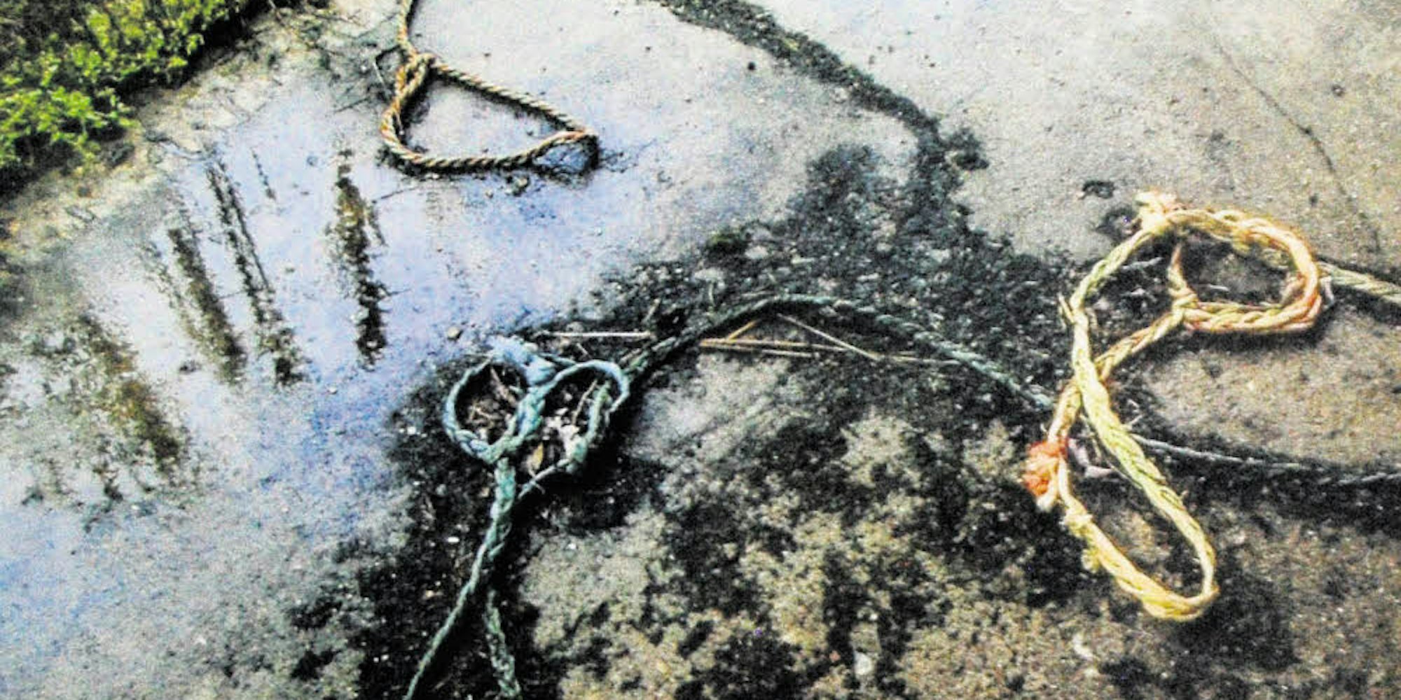 Stricke, mit denen die Tiere in das Gebäude geführt wurden, erinnern an die Arbeit im Schlachthof.