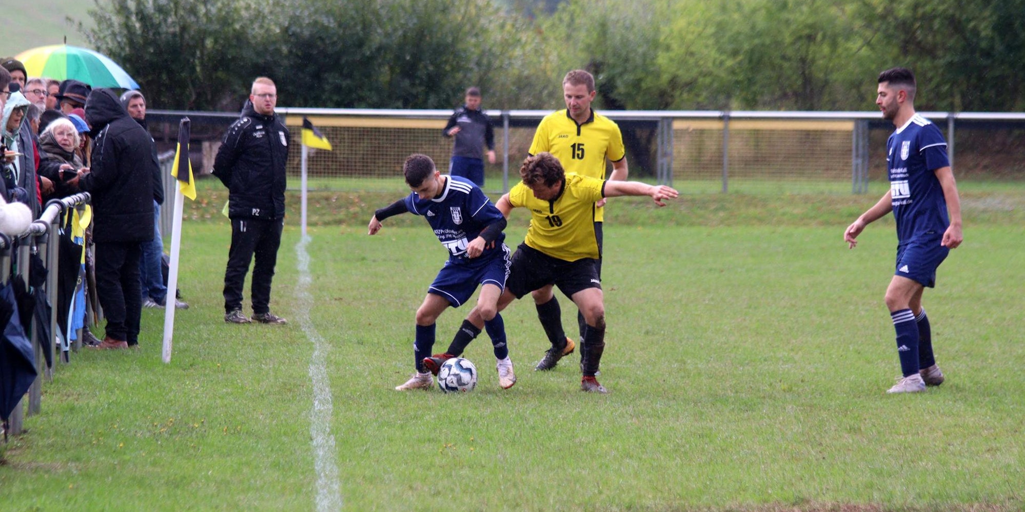 In Halbzeit zwei wurde es, bedingt durch den stärker werdenden Regen, ungemütlich auf dem Rasen. Eugen Stier sprang im eigenen Strafraum zu ungestüm in den Gegenspieler, den fälligen Strafstoß verwandelte Marco Joepen (55.).