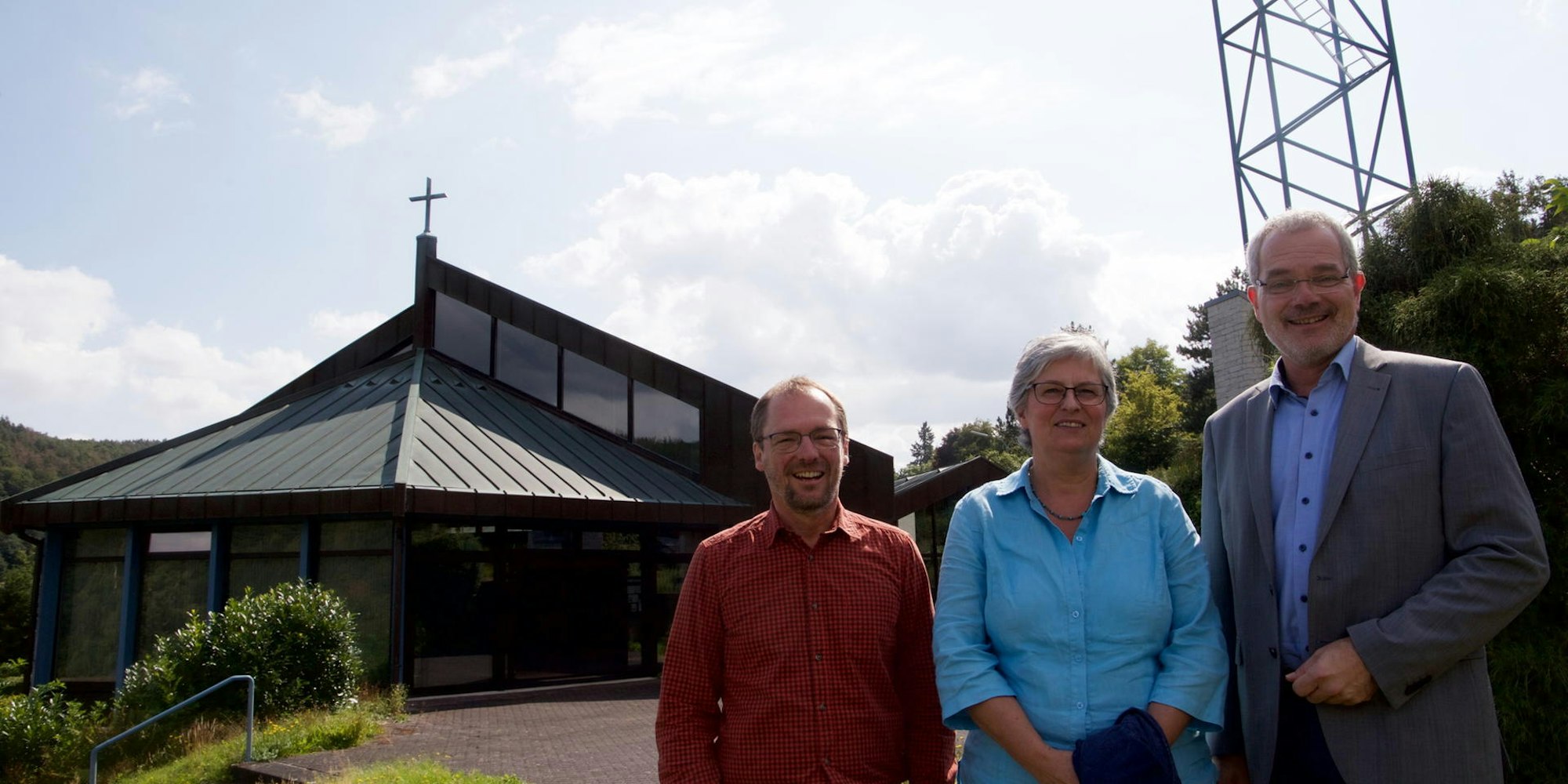 Die Pläne für die Heimbacher Kirche stellten Christoph Ude (v.l.), Gabriele Bolender und Malte Duisberg vor.