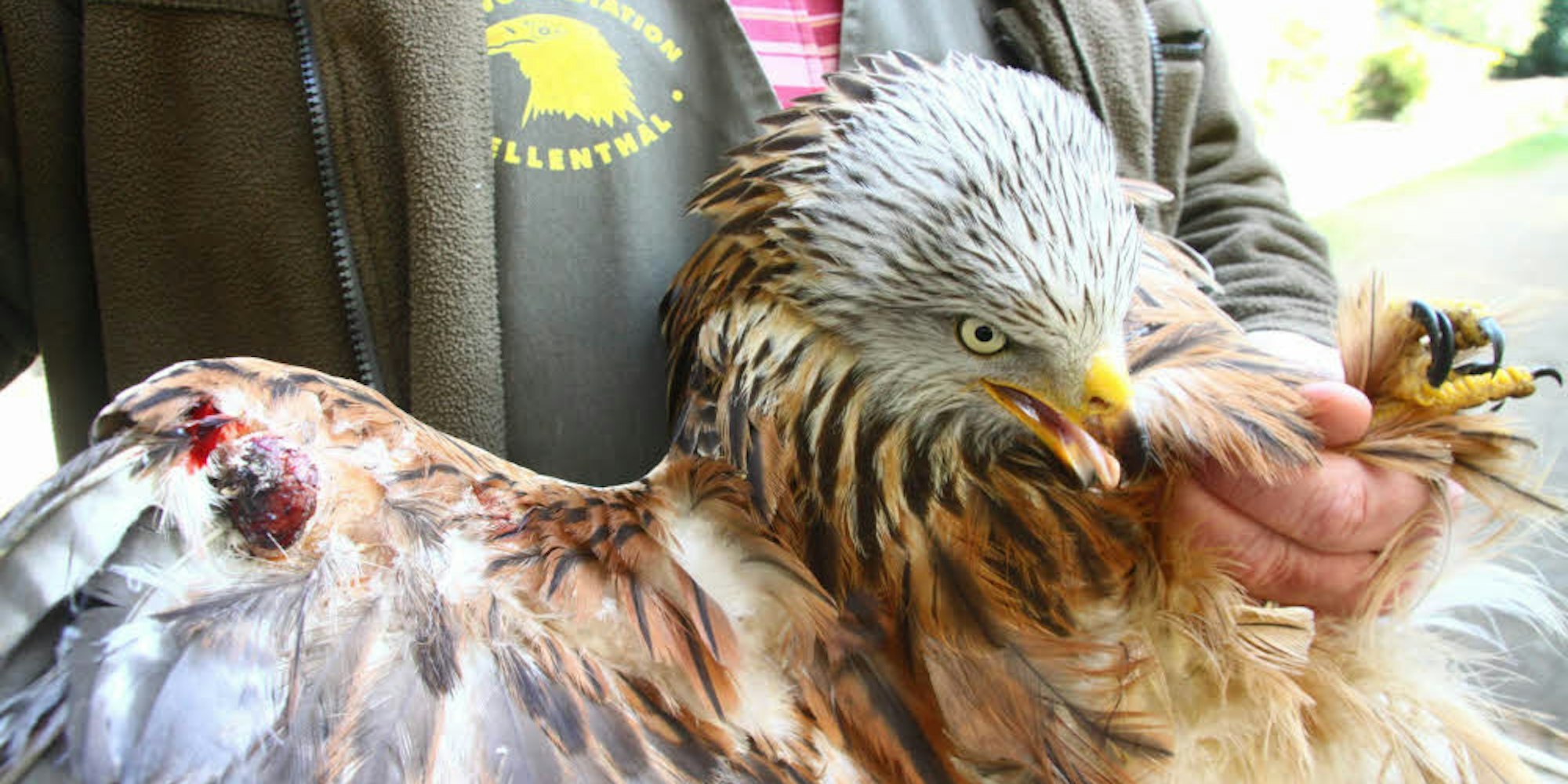 Nach etwa 25 Zentimetern endet die Schwinge des Milans in einer Wunde.