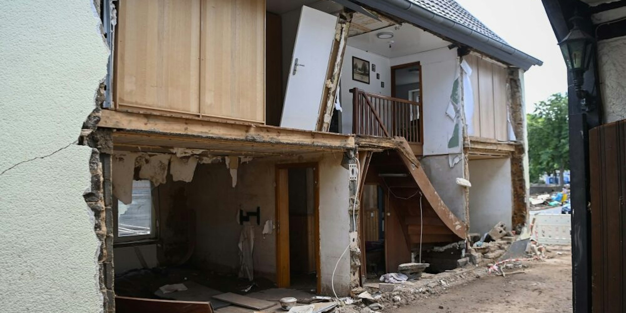 Die seelischen Folgen der Hochwasserkatastrophe sind nicht immer auf den ersten Blick so sichtbar wie die Beschädigung an diesem Haus.