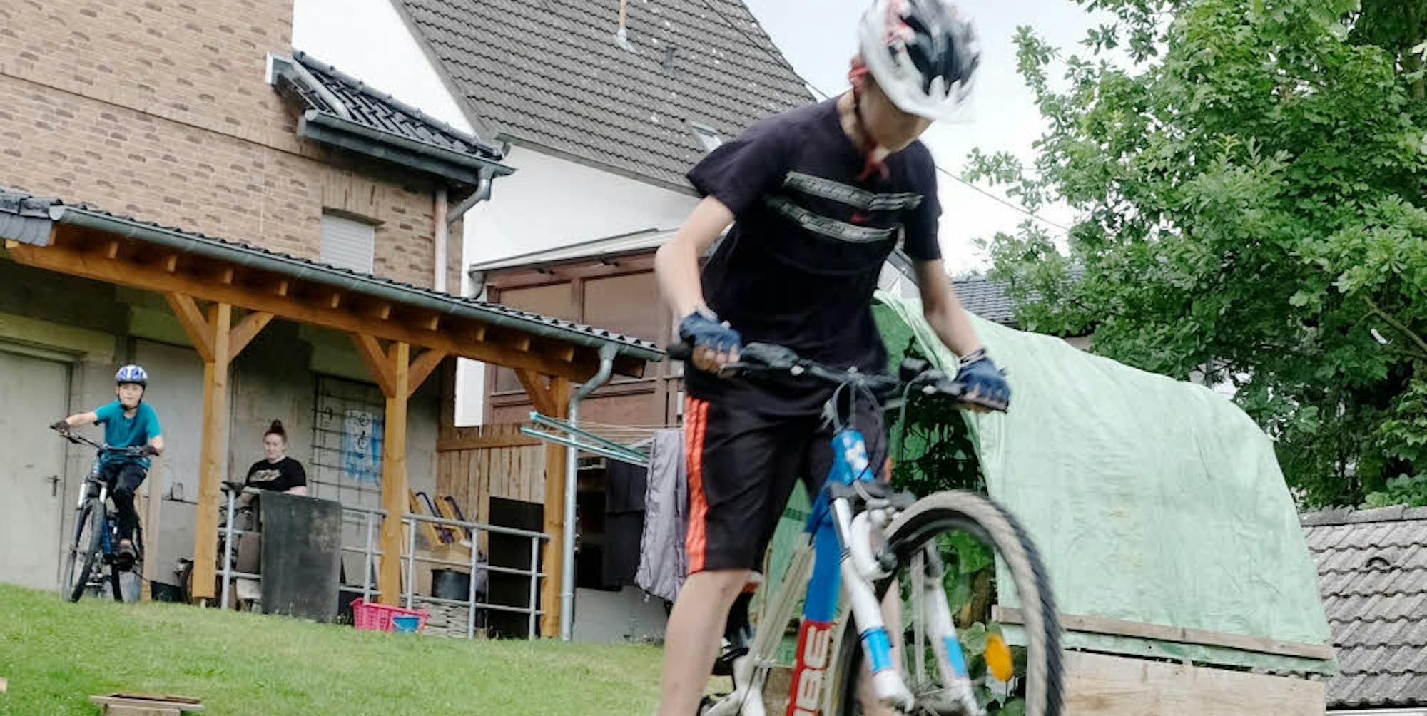 Momentan üben Tom Latz und seine Freunde waghalsige Sprünge und andere Kunststücke im Garten. Sie wünschen sich aber einen Fahrradpark.