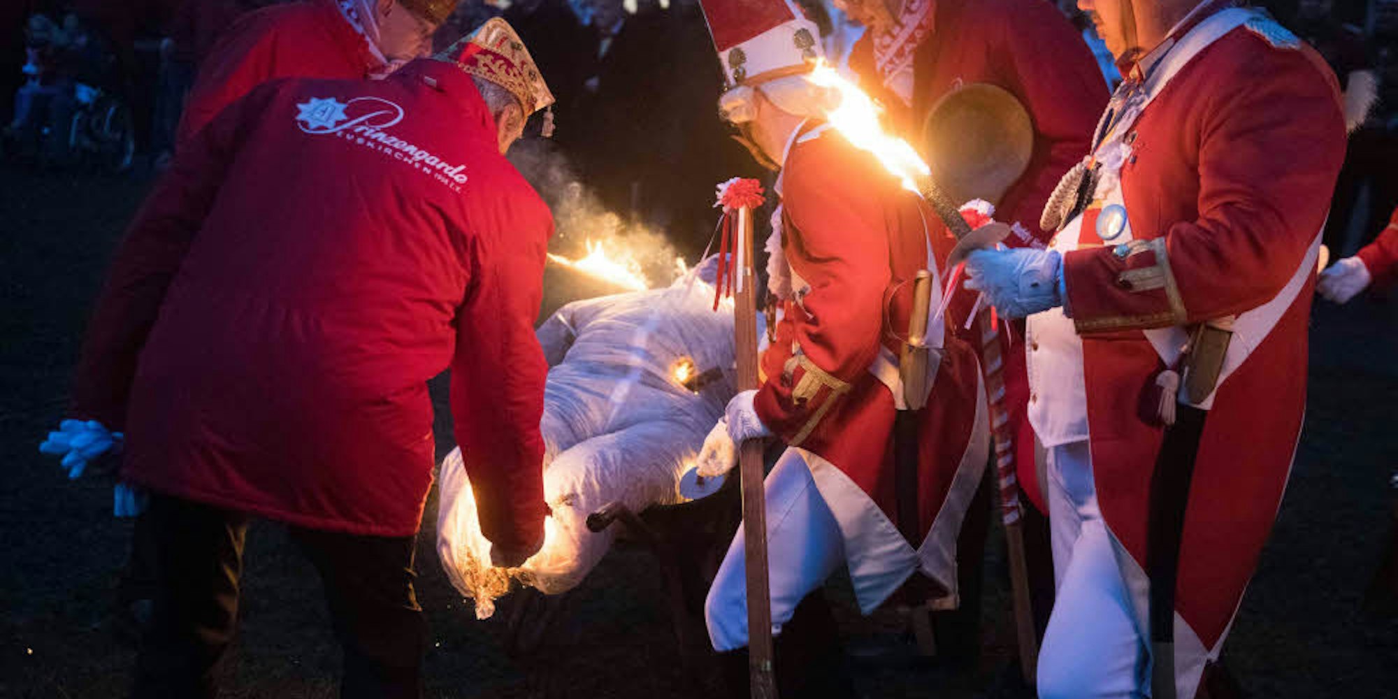 Strafe muss sein: Die Euskirchener Karnevalisten verbrannten im Klostergarten den Nubbel.