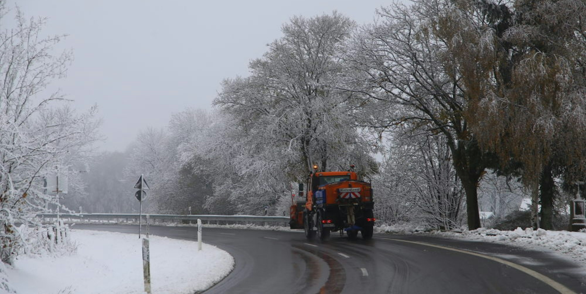 Der erste Räumeinsatz dieses Winters: Schneepflüge machten in den Höhenlagen die Straßen frei.