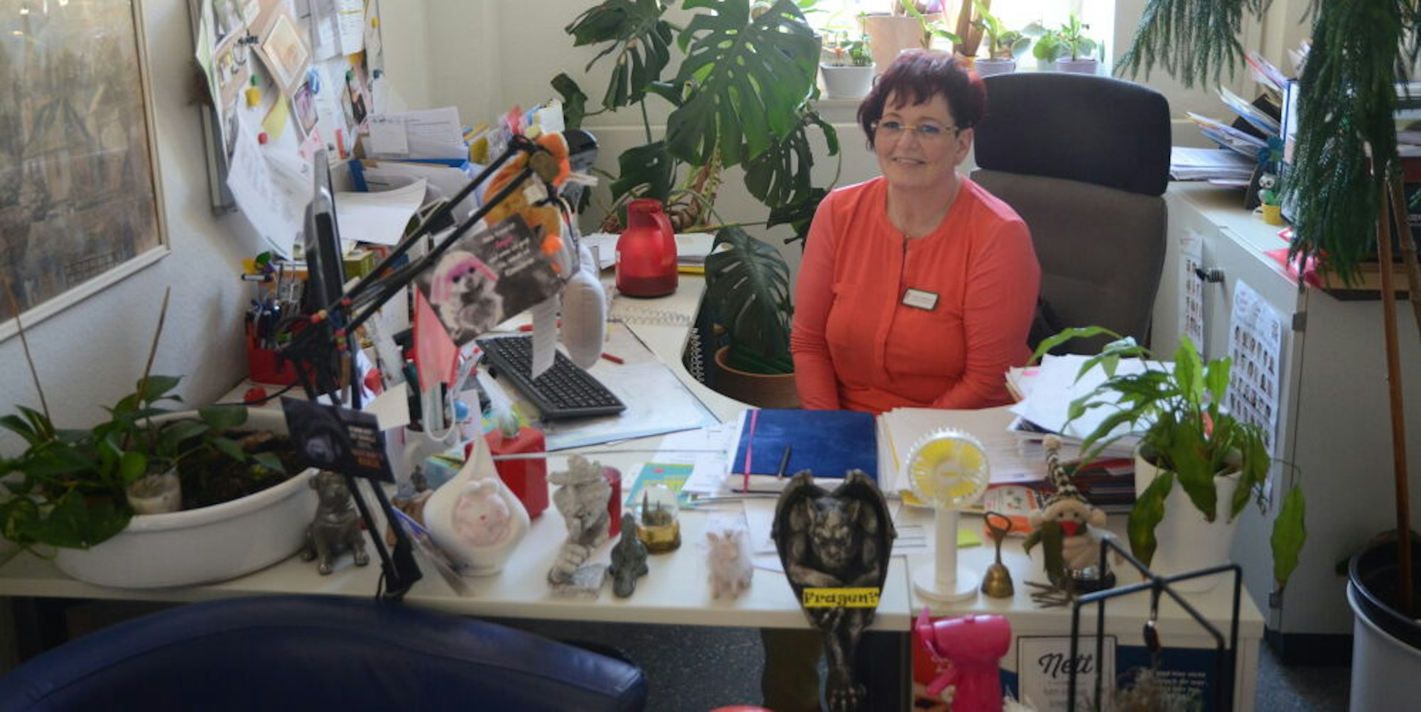 Liebevoll hat Angela Steinhauer ihr Büro eingerichtet – inklusive der Pflanzen, die anderswo in der Klinik fast eingegangen waren und nun bei ihr prächtig gedeien.