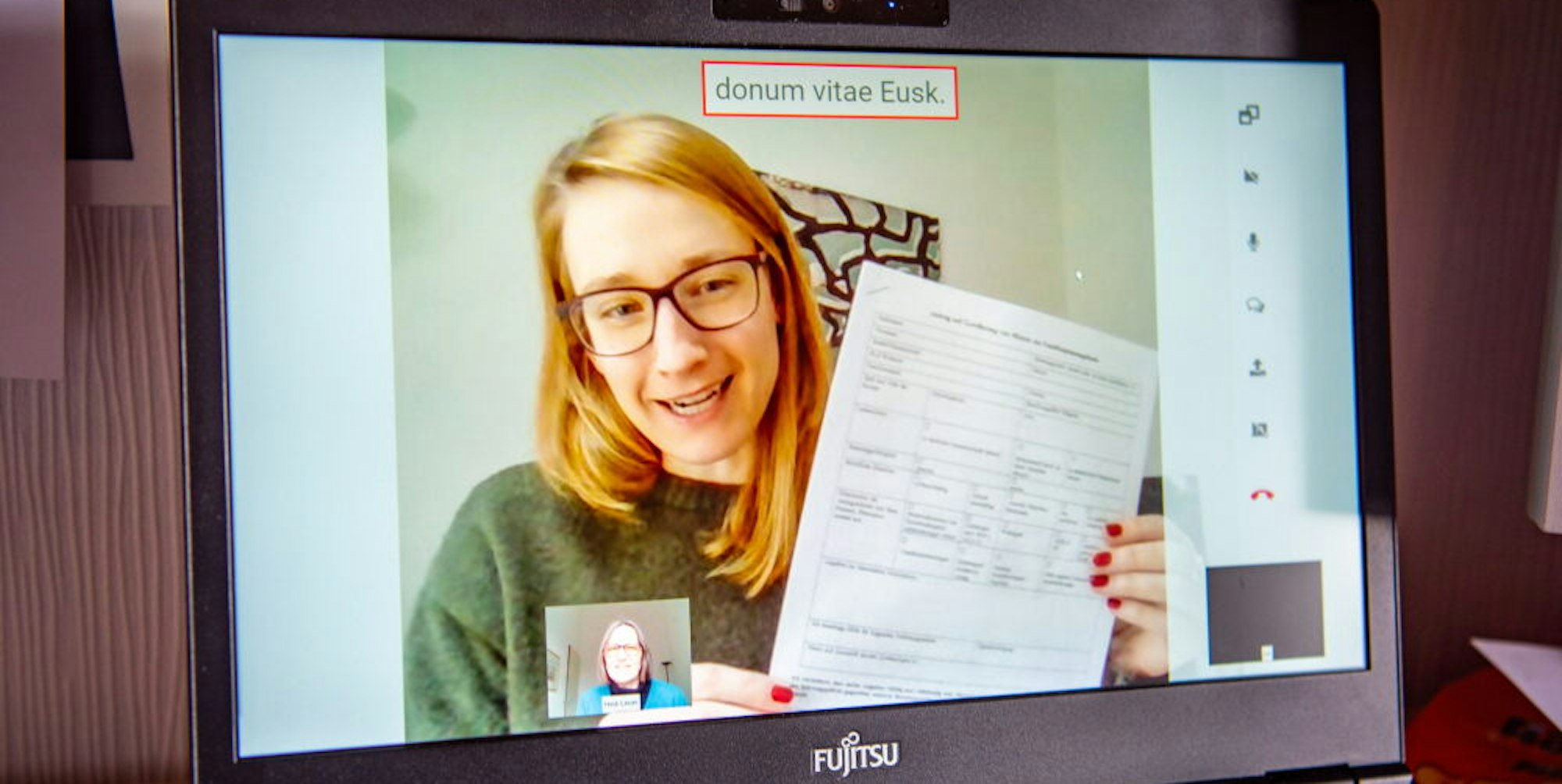 So kann eine Beratung während der Corona-Pandemie aussehen: Sarah Ax und Hedi Leuer (klein im Bild) sind froh über das Angebot, beraten aber lieber persönlich.