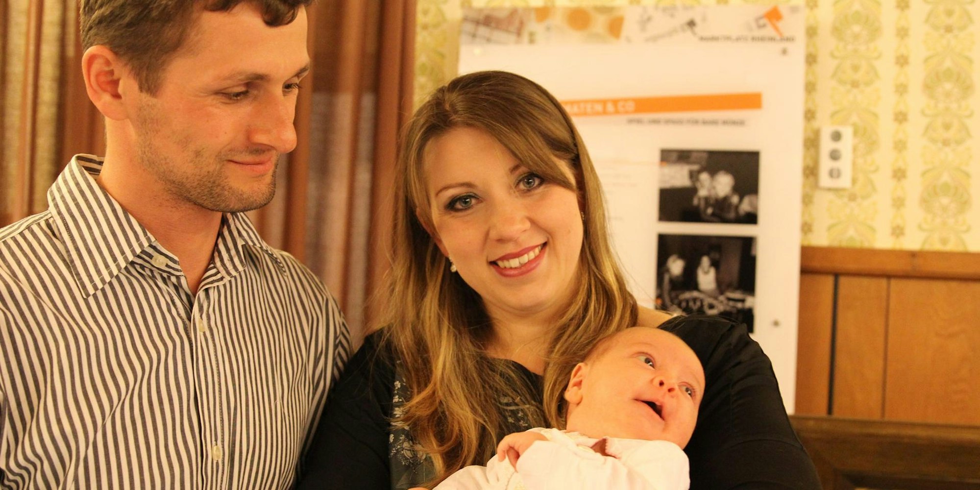 Stolze Eltern: Ihre fünf Wochen alte Tochter Ruby haben Natalia und Steve Weisheit im Kommerner Freilichtmuseum taufen lassen.