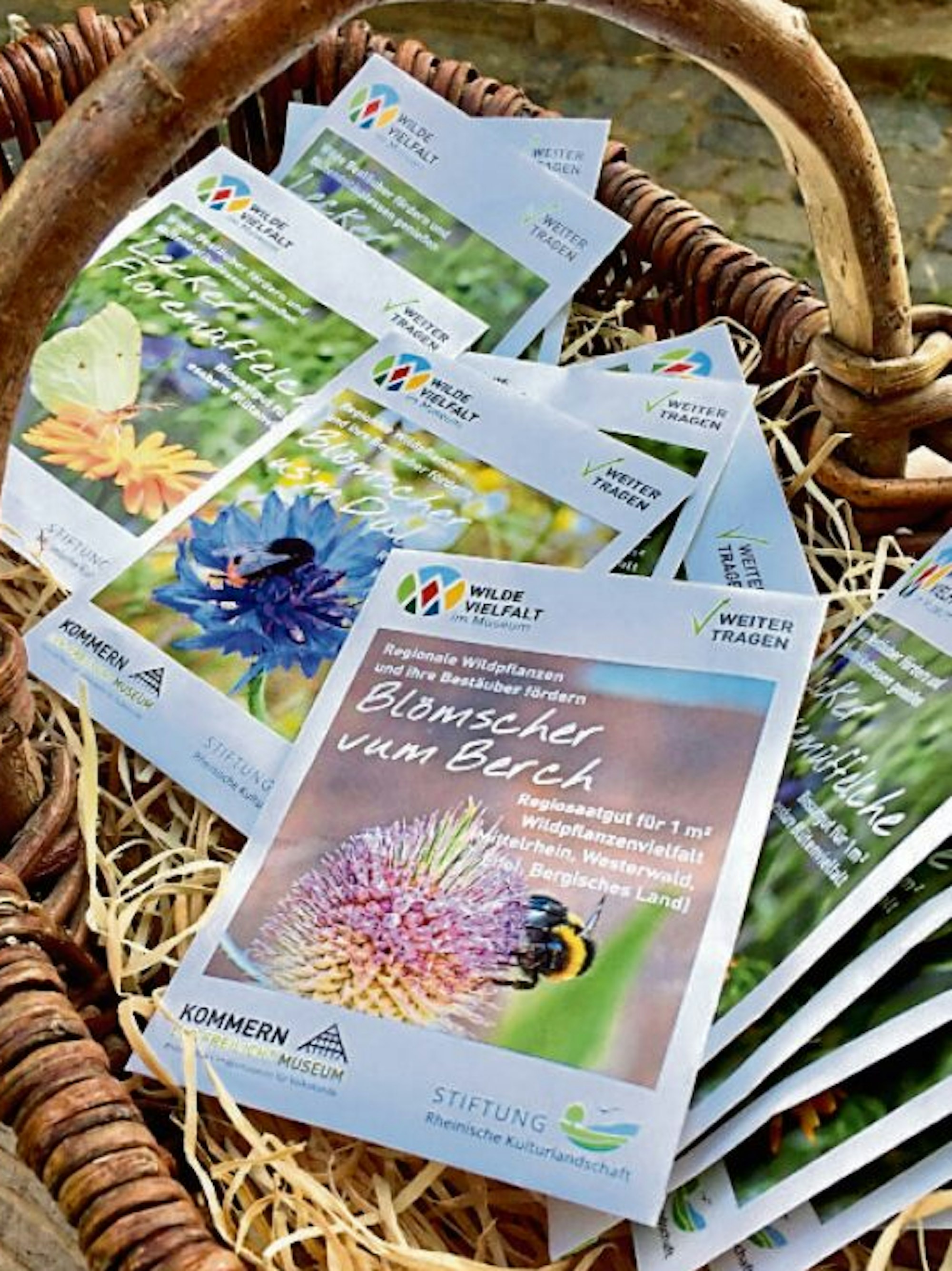 Blömscher us’m Dal, Blömscher vum Berch und Lecker Floremüffelche – so heißen die Saatgut-Tütchen, die künftig im Museum bei besonderen Aktionen erhältlich sind. Bei den ersten beiden handelt es sich um regionales Saatgut, die dritte Mischung ist auch für Besucher von weiter her geeignet. Diese enthält Biosaatgut für eine essbare Blütenvielfalt. Zudem gibt es Postkarten mit Bildern aus der Pflanzen- und Tierwelt samt passenden Sprüchen. „Die Saattüten sollen als Gewinne oder an Infoständen an Besucher mit bewusstem Interesse verteilt werden“, sagte Projektleiterin Laura Fortmann von der Stiftung Rheinische Kulturlandschaft.