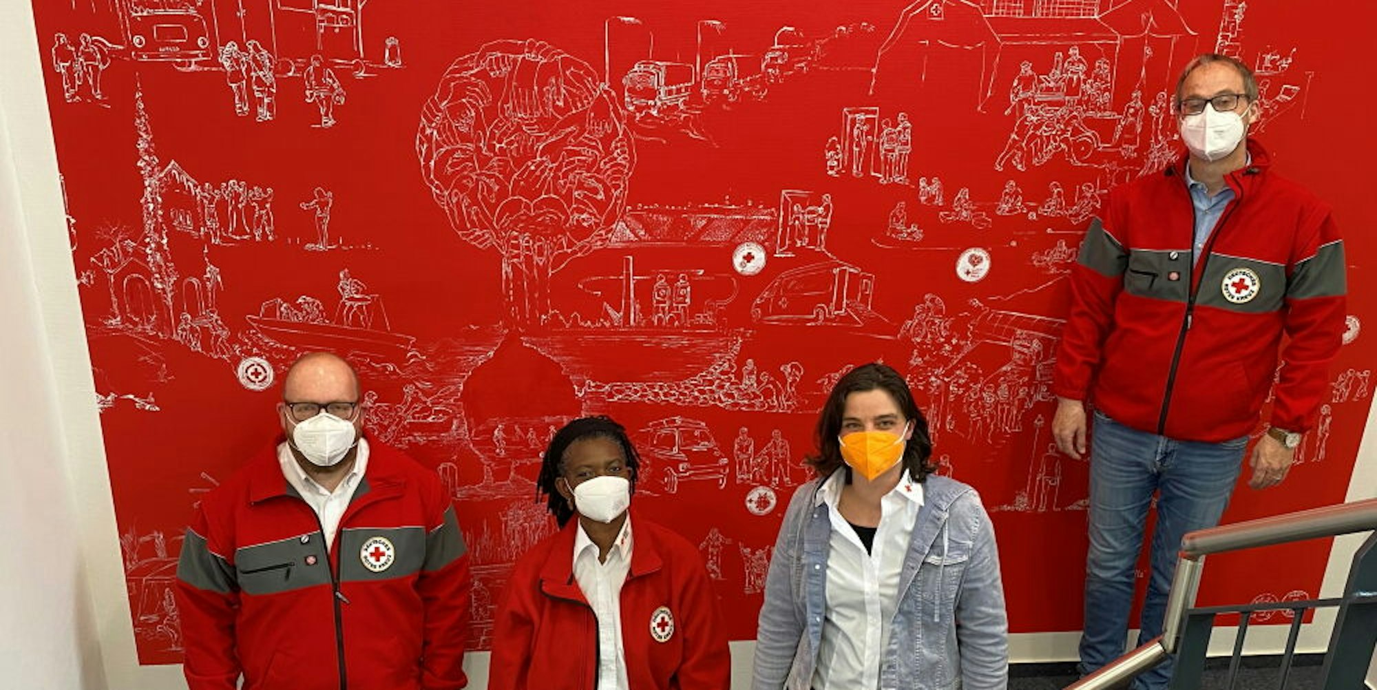 Boris Brandhoff, Sylvie Dayiku Pomame, Nora Kassan und Rolf Klöcker (v.l.) stellten das neue Projekt der DRK-Integrationsagentur vor.