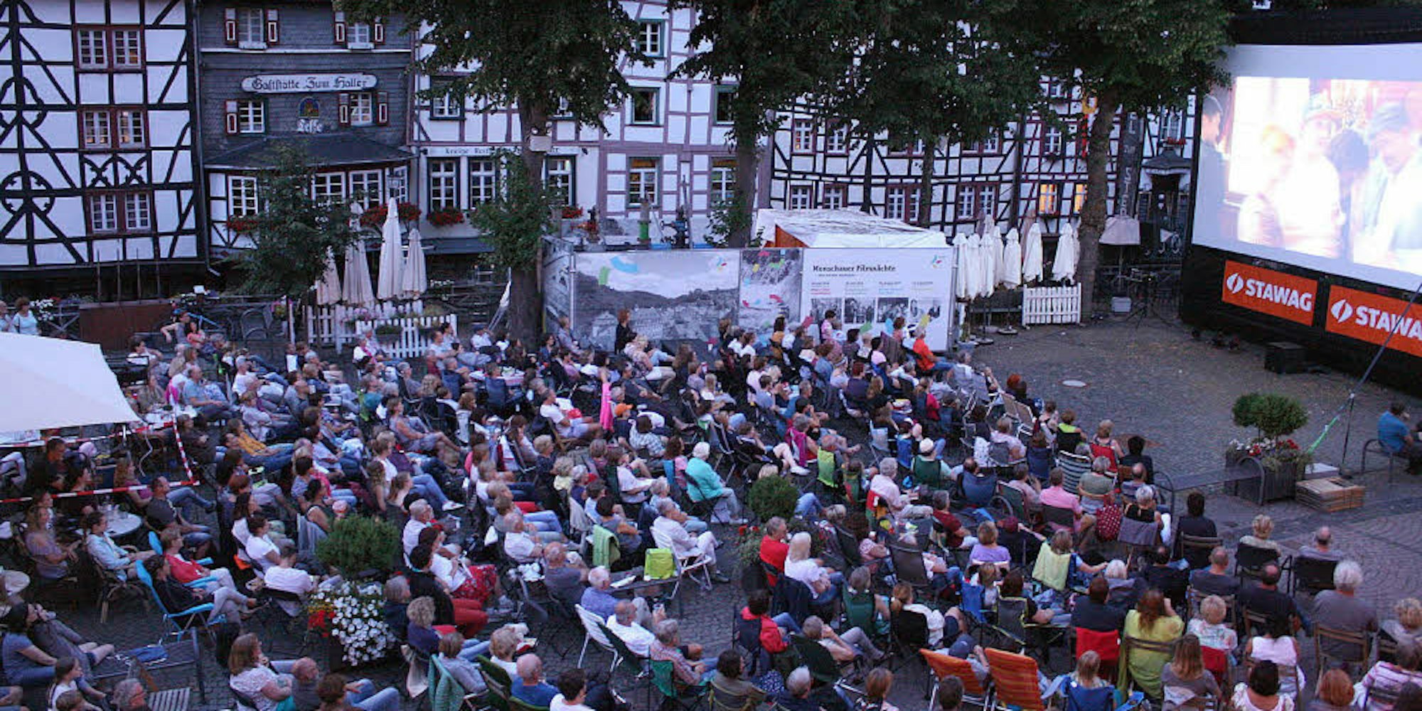 Film ab vor der idyllischen Kulisse in Monschaus guter Freiluft-Stube: Rund 400 Besucher sind zum Auftakt der Filmnächte in der Altstadt.
