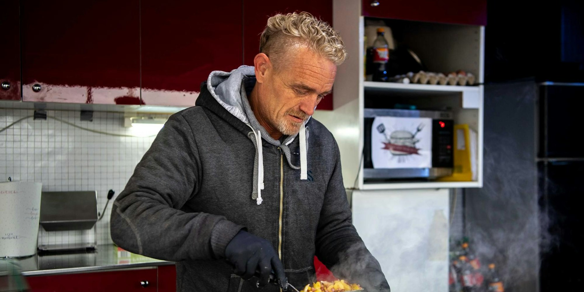„Wirtschaftlich zu arbeiten, ist gerade sehr schwierig“, sagt der Chef des „Underground Burger“. Deshalb hat Contemprée umgeschwenkt. Statt Pommes gibt es in dem Foodtruck, der in Stotzheim auf dem Areal der Tankstelle steht, Bratkartoffeln. Die Resonanz sei gut, berichtet der Euskirchener. So gut, dass er überlegt, die Bratkartoffeln auf der Speisekarte zu lassen – auch wenn der Preis für Speiseöl wieder sinken sollte.