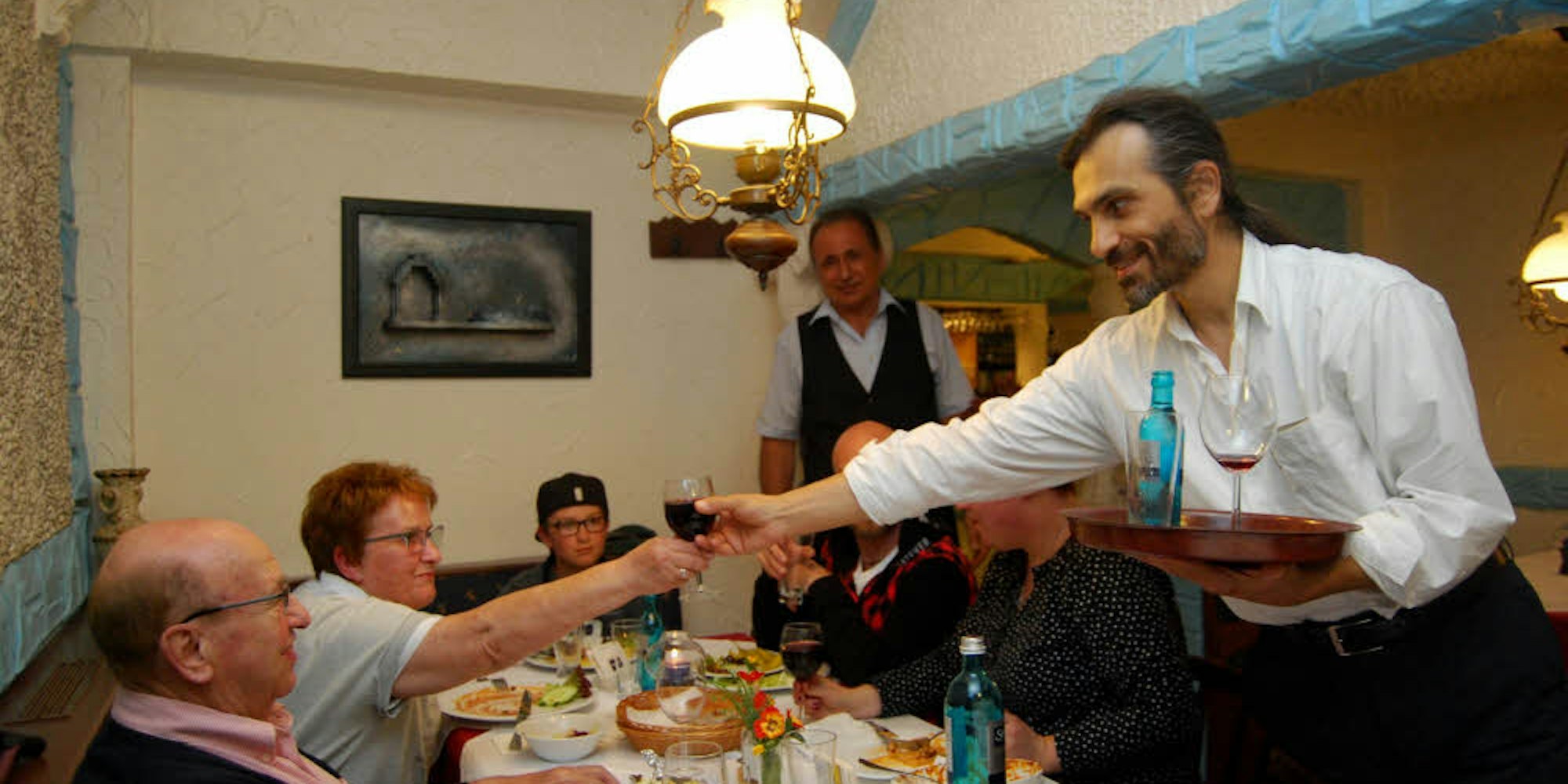 Die Rolle als Akropolis-Wirt ist kein Fulltime-Job. Hauptberuflich betreibt Hodolides am Severinskirchplatz in Köln einen Bioladen mit griechischen Produkten aus der Region Mani. Im Syrtaki arbeitet er seit Beginn dieser Sommersaison, meistens am Wochenende. Vasilios Mavridis hatte für das Restaurant am Alten Markt, das er 1999 übernahm, händeringend Personal gesucht. „Kellnern wollte ich eigentlich nicht mehr“, erzählt Hodolides. „Das habe ich früher lange genug gemacht.“