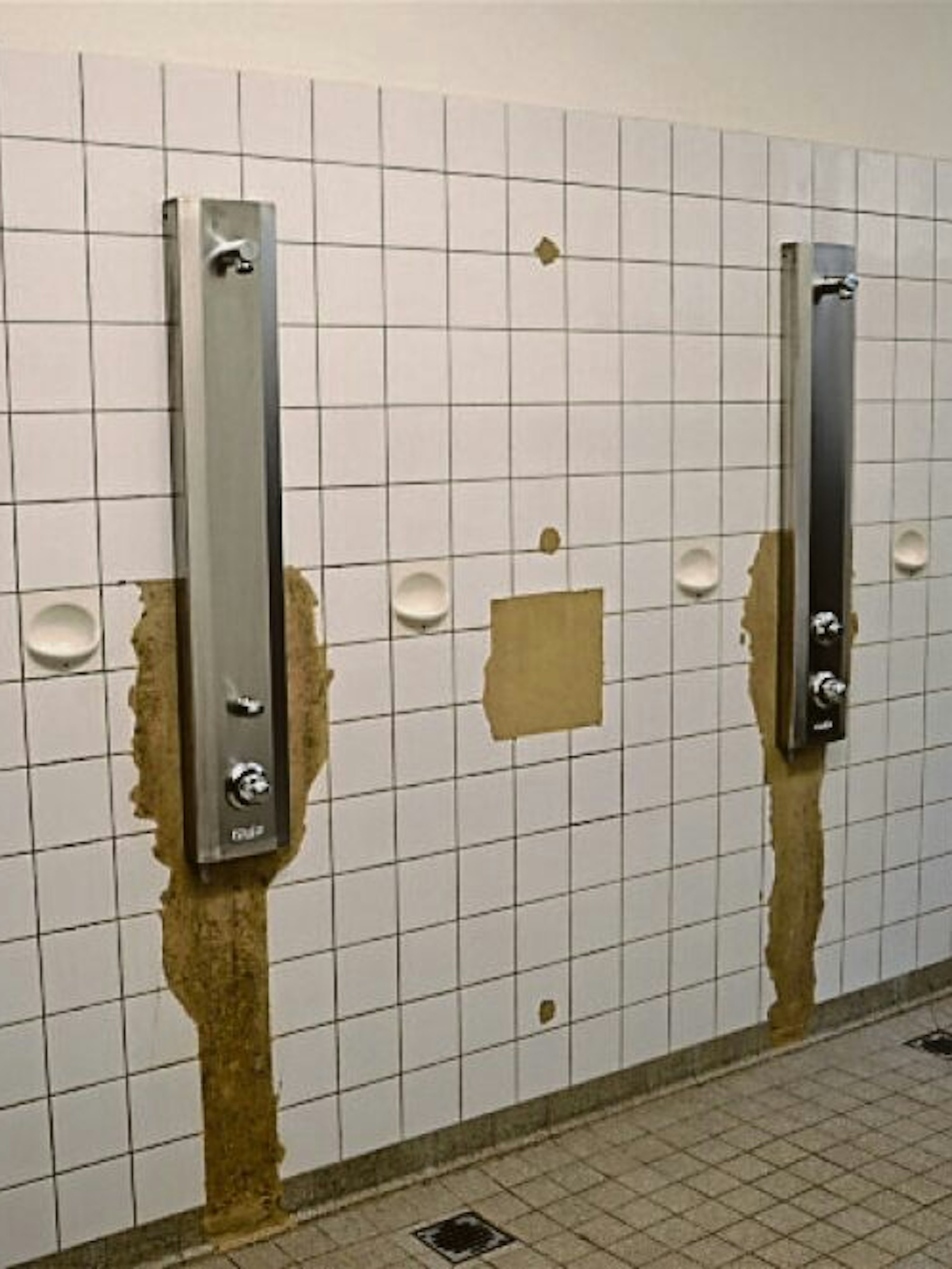 Wenig einladend sind zurzeit die alten Duschräume. Sie werden wie die Umkleiden vollständig erneuert.