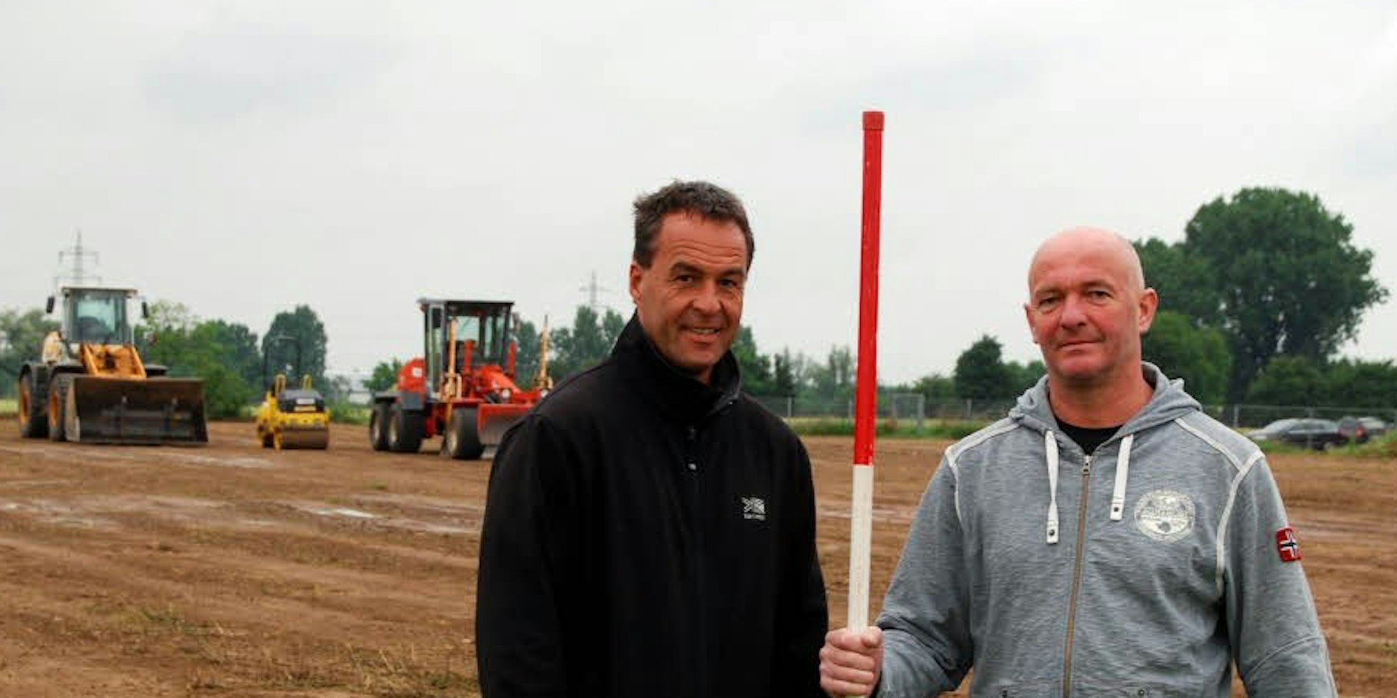 Der Landschaftsarchitekt Clemens Esser (Rheinbach) und Werner Esser, der bis vor kurzem SV-Vorsitzender war und jetzt als Beisitzer im Vorstand aktiv ist, stellten das Bauvorhaben am Dienstag der Presse vor. Eine Reihe von Vorarbeiten hatten bereits Mitglieder des Vereins in Eigenleistung erbracht, so dass der eigentliche Sportplatzbau durch das Fachunternehmen recht schnell über die Bühne gehen kann. „Unser Ziel ist es, den Platz im September oder Oktober zu eröffnen“, sagte Werner Esser.